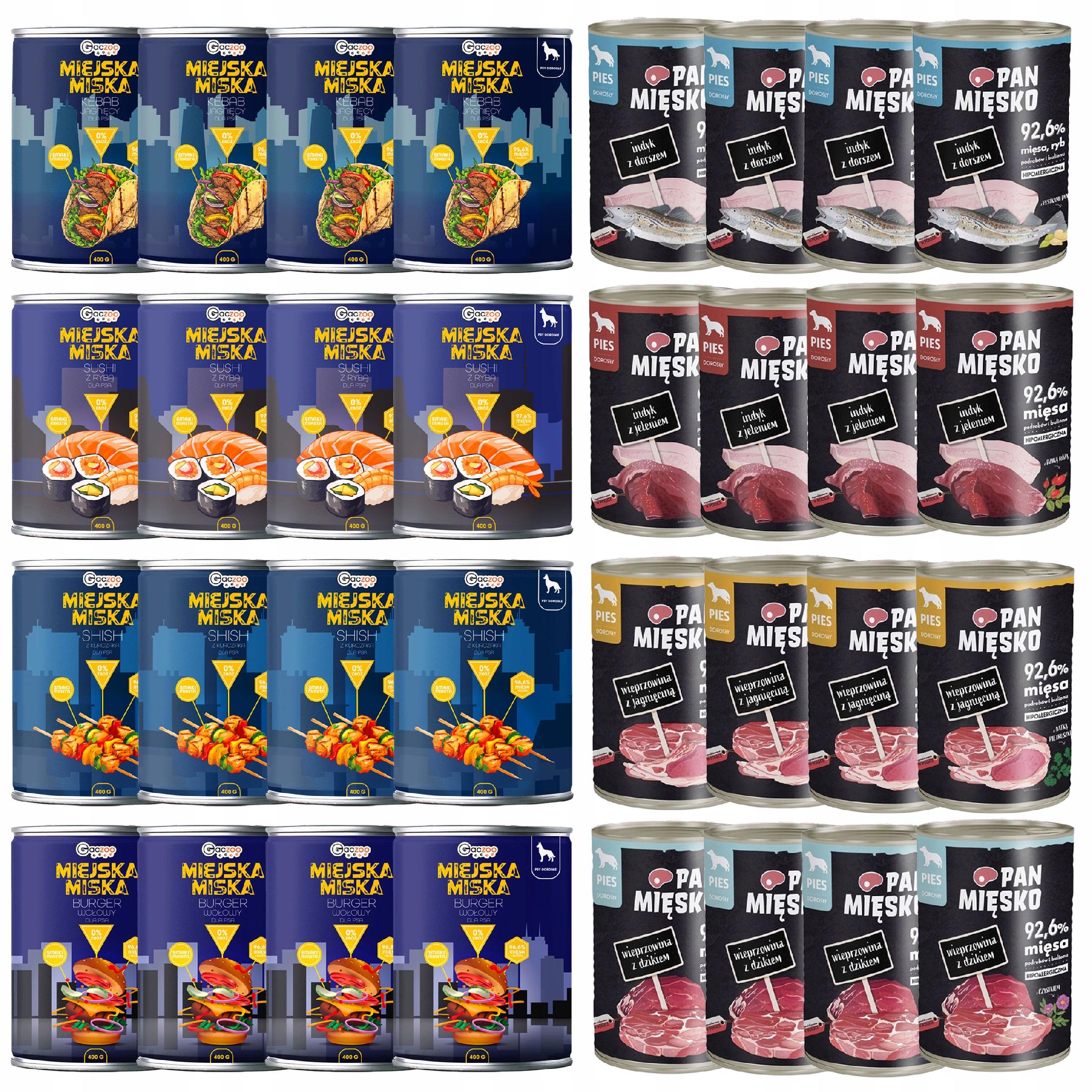 Pan Mięsko Miejska Miska Gaczoo karma mokra dla psa mix smaków 32 x 400g