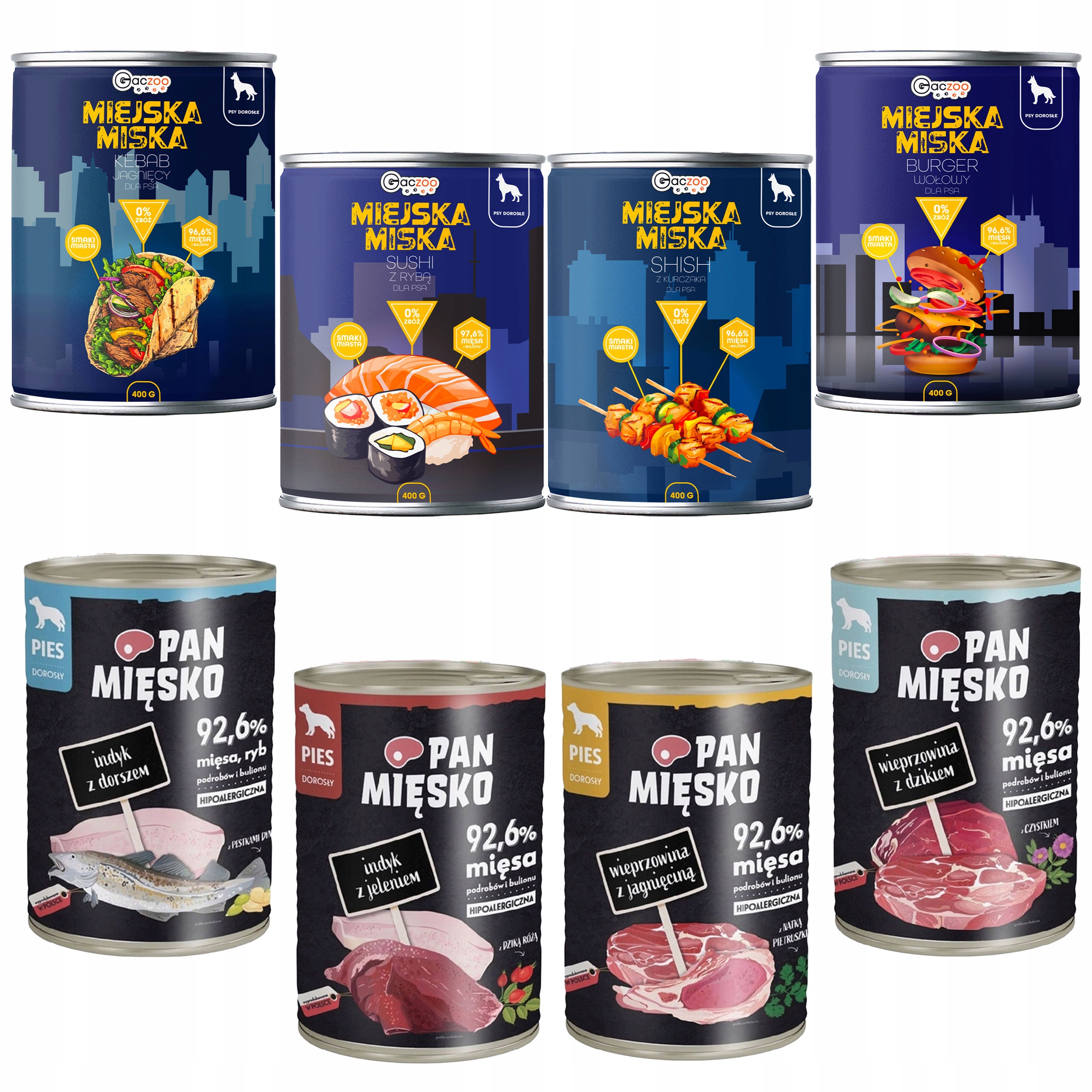 Pan Mięsko Miejska Miska Gaczoo karma mokra dla psa mix smaków 8 x 400g