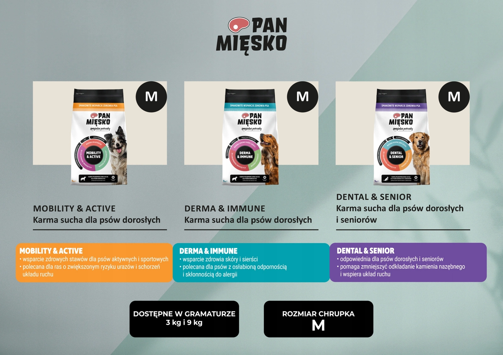 PAN MIĘSKO MOBILITY&ACTIVE Specjalne Potrzeby karma dla psa sucha CHRUPKI M 9 kg