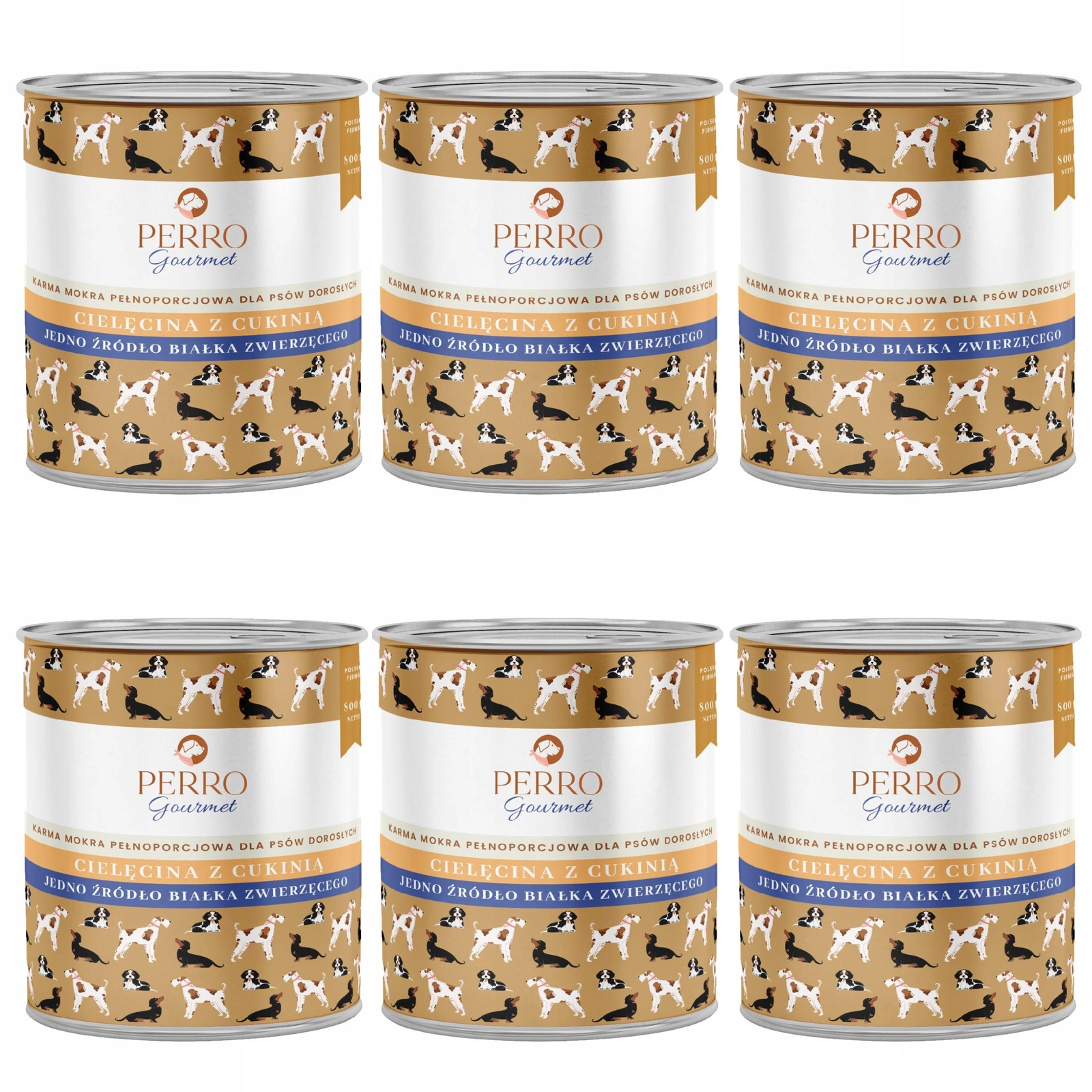 Perro Gourmet Monobiałkowa Karma Mokra dla psa Cielęcina z Cukinią 6 x 800g