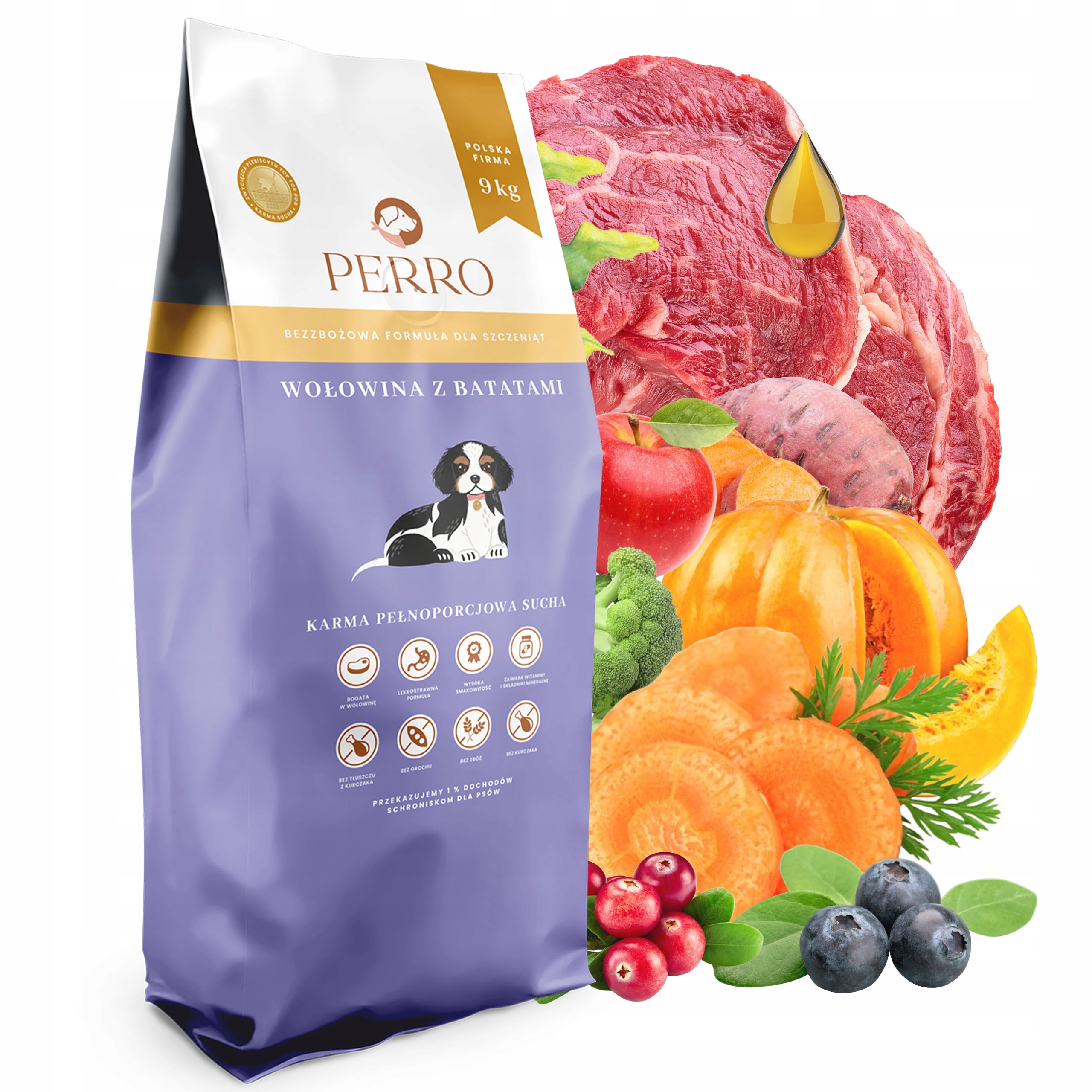 PERRO Junior karma sucha dla szczeniąt Wołowina z Batatami 9 kg bez zbóż