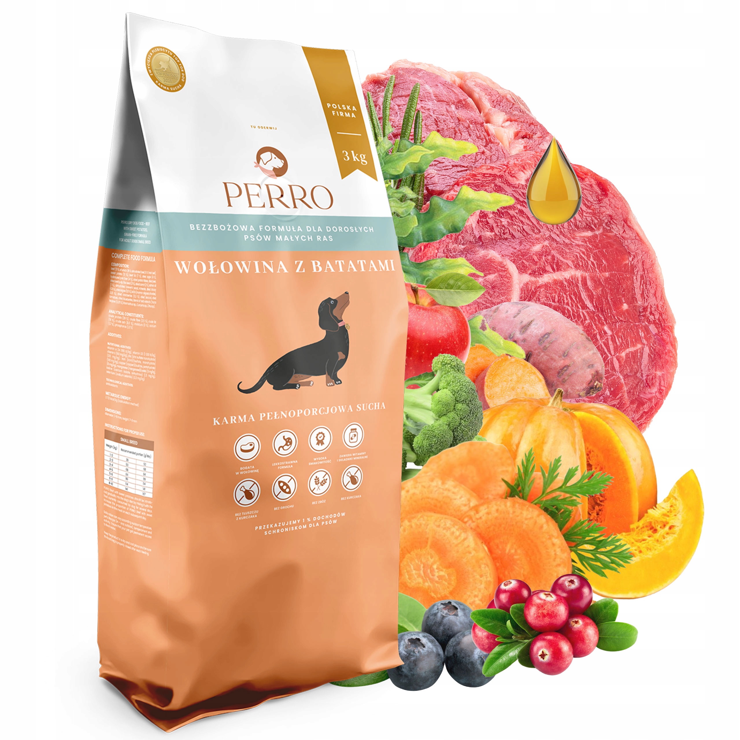 ✅ PERRO Wołowina z batatami – bezzbożowa karma sucha dla psów dorosłych małych ras.