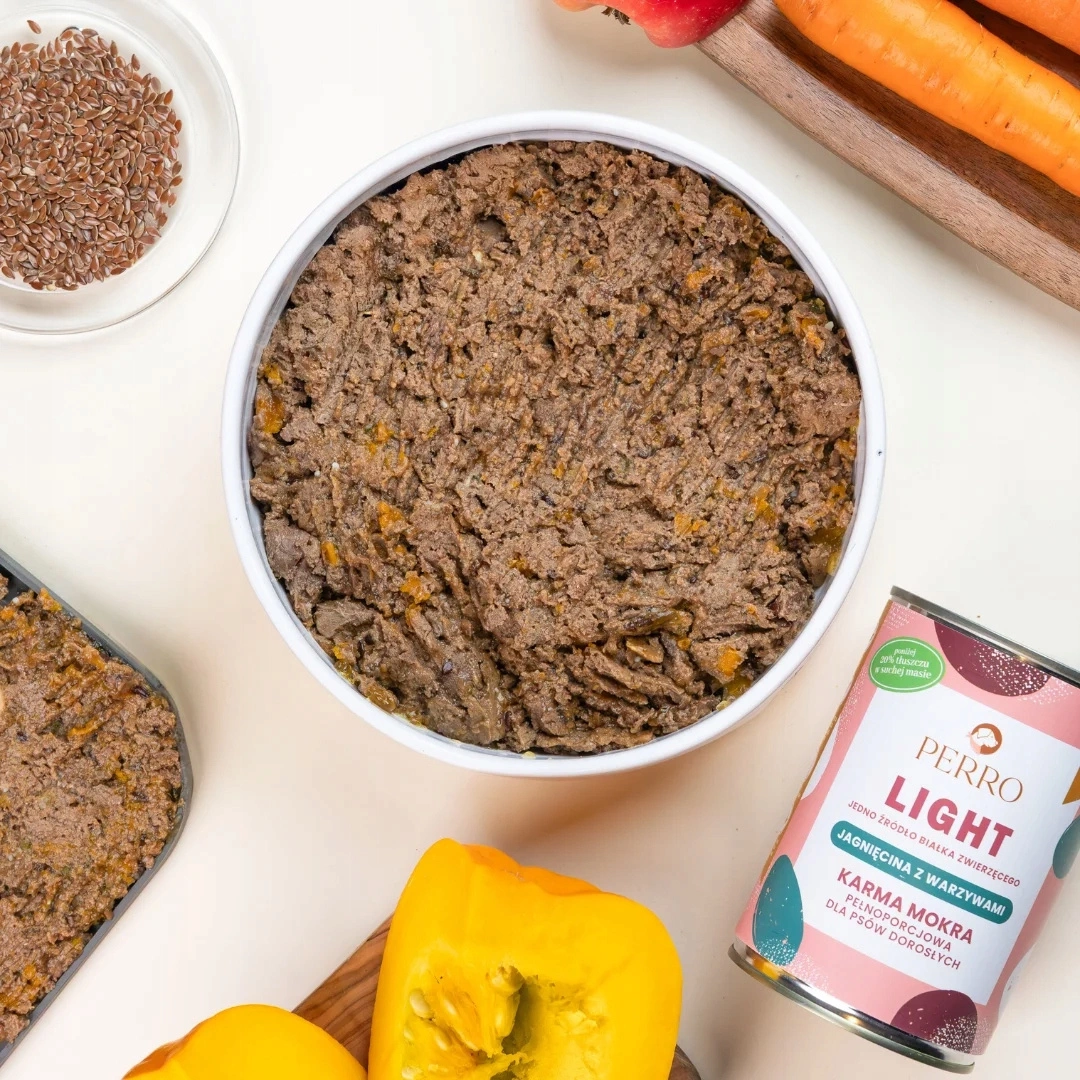 ⭐️ PERRO Karma mokra Jagnięcina z warzywami – karma mokra light dla psa Linia karm mokrych PERRO Light to linia dedykowana psom z wrażliwym układem trawiennym, psim seniorom oraz wszystkim tym psom, które chcą zgubić nadprogramowe kilogramy.