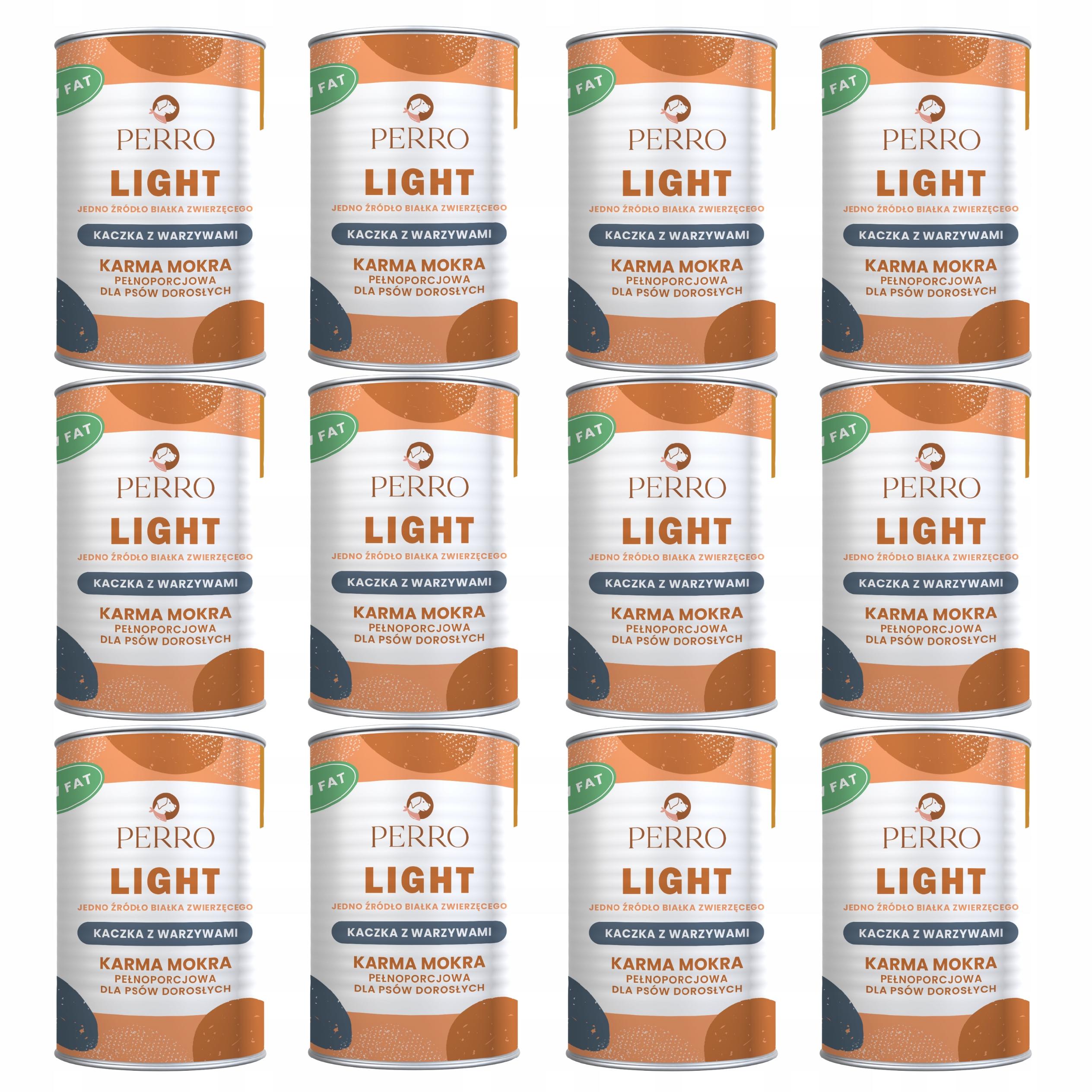 Perro LIGHT Monobiałkowa karma mokra dla psa Kaczka z warzywami 12 x 400g