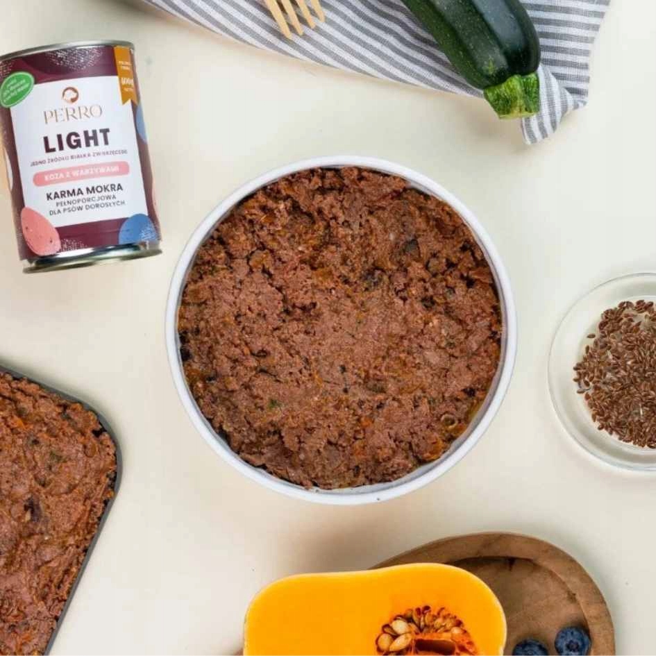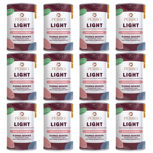 Perro LIGHT Monobiałkowa karma mokra dla psa Koza z warzywami 12 x 400g