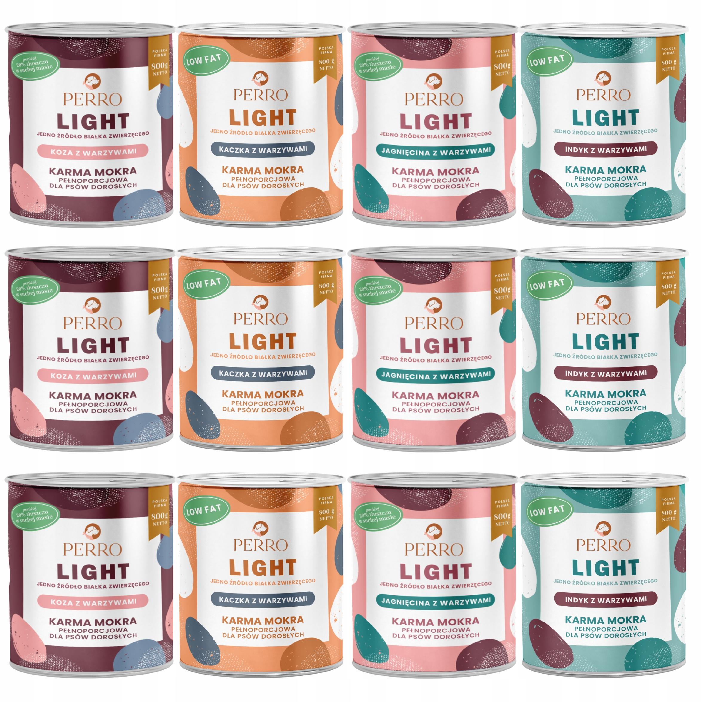 PERRO Light Monobiałkowa karma mokra dla psa mix smaków 12 x 800g