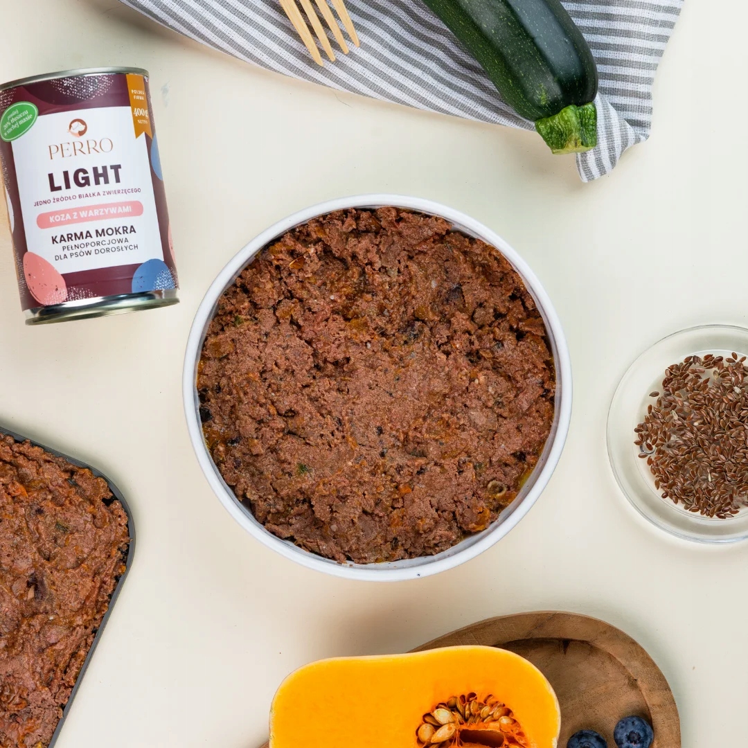 ⭐️ PERRO Karma mokra Koza z warzywami – karma mokra light dla psa Linia karm mokrych PERRO Light to linia dedykowana psom z wrażliwym układem trawiennym, psim seniorom oraz wszystkim tym psom, które chcą zgubić nadprogramowe kilogramy.