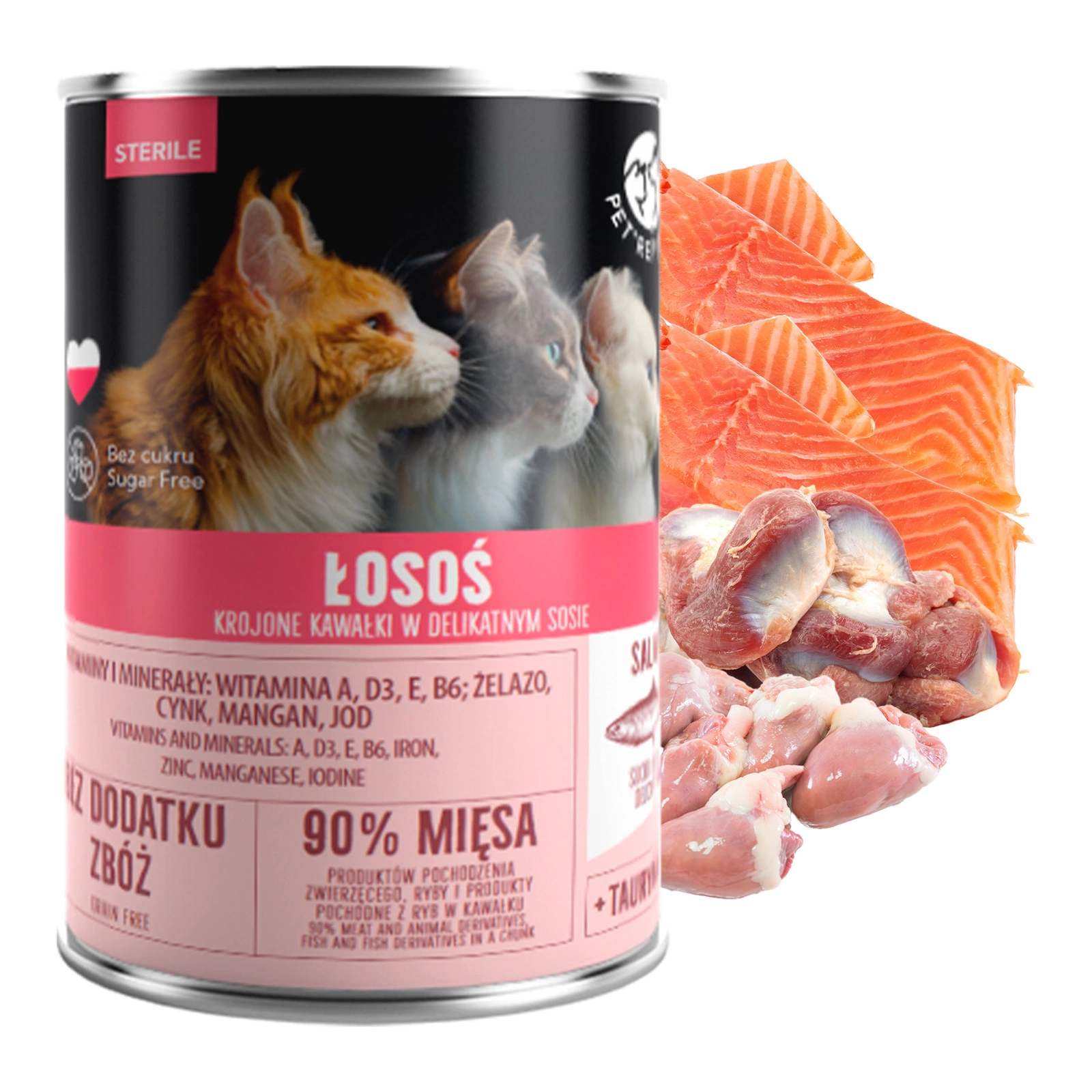 • Wysoka zawartość mięsa – 90% mięsa i produktów pochodzenia zwierzęcego, co zapewnia odpowiednią ilość białka dla kota