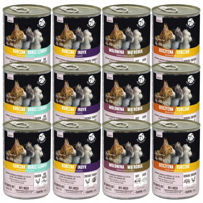 PET REPUBLIC Karma mokra kawałki w galaretce dla kota mix smaków 12 x 400g