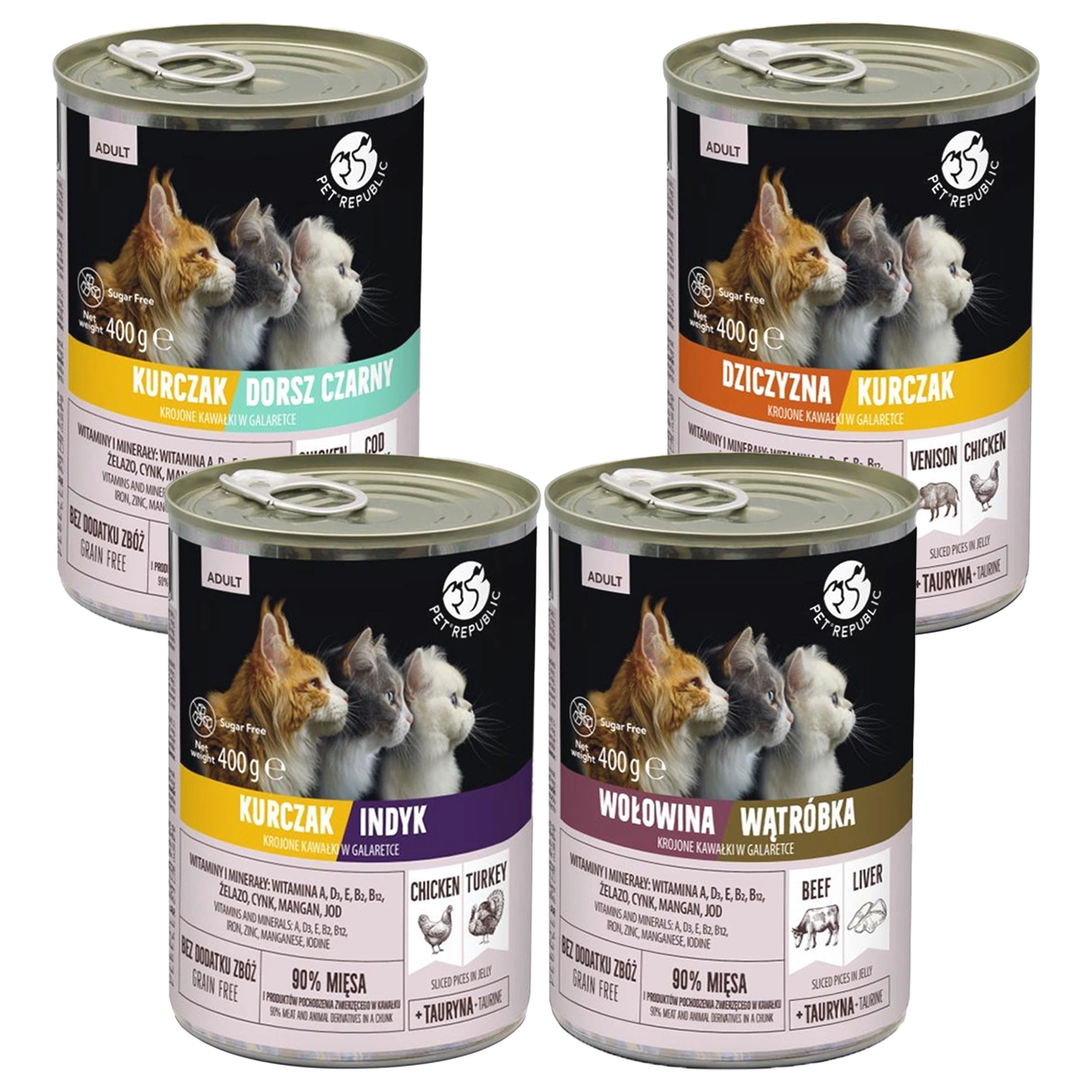 PET REPUBLIC Karma mokra kawałki w galaretce dla kota mix smaków 4 x 400g