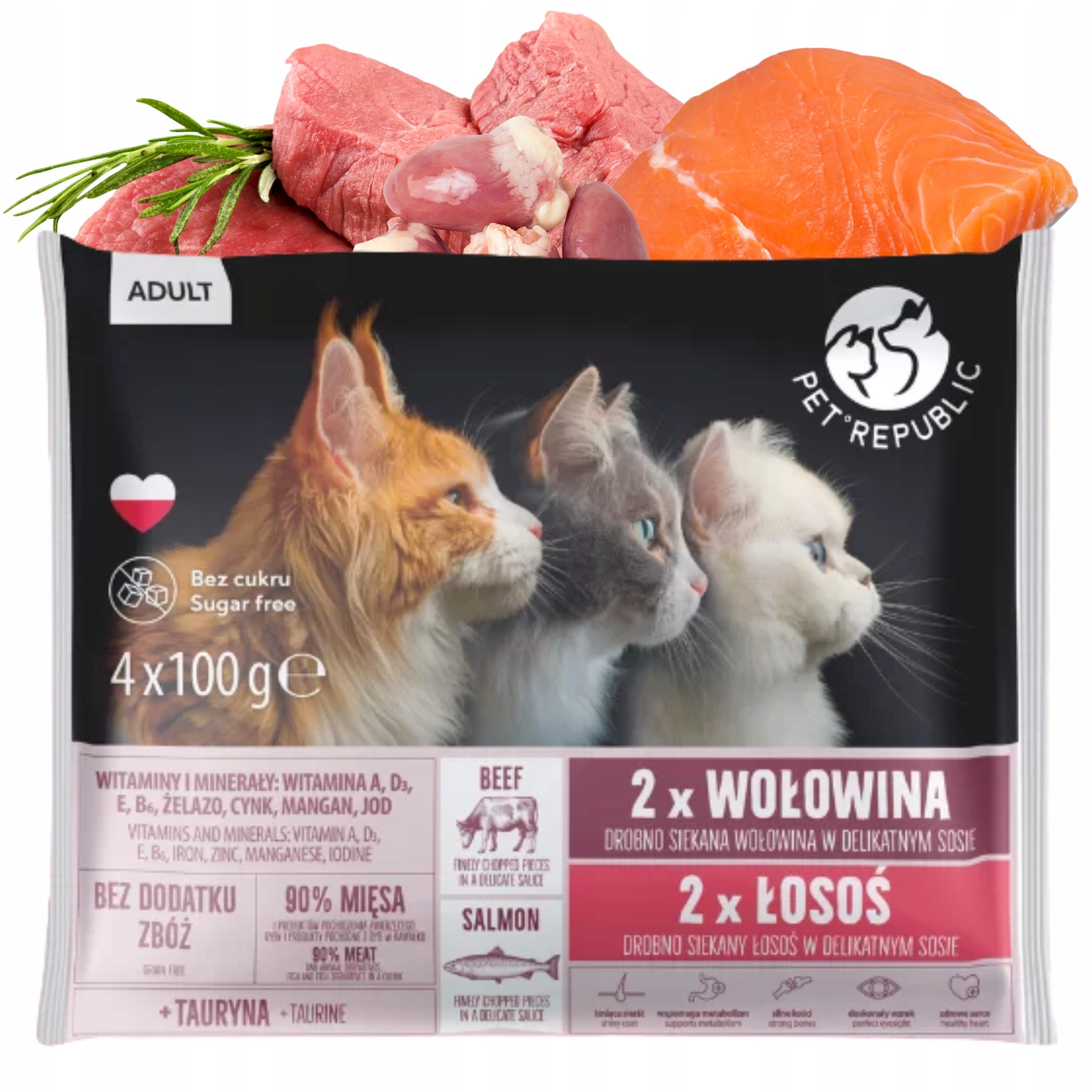 PET REPUBLIC mokra karma dla kota łosoś wołowina 4 x 100g