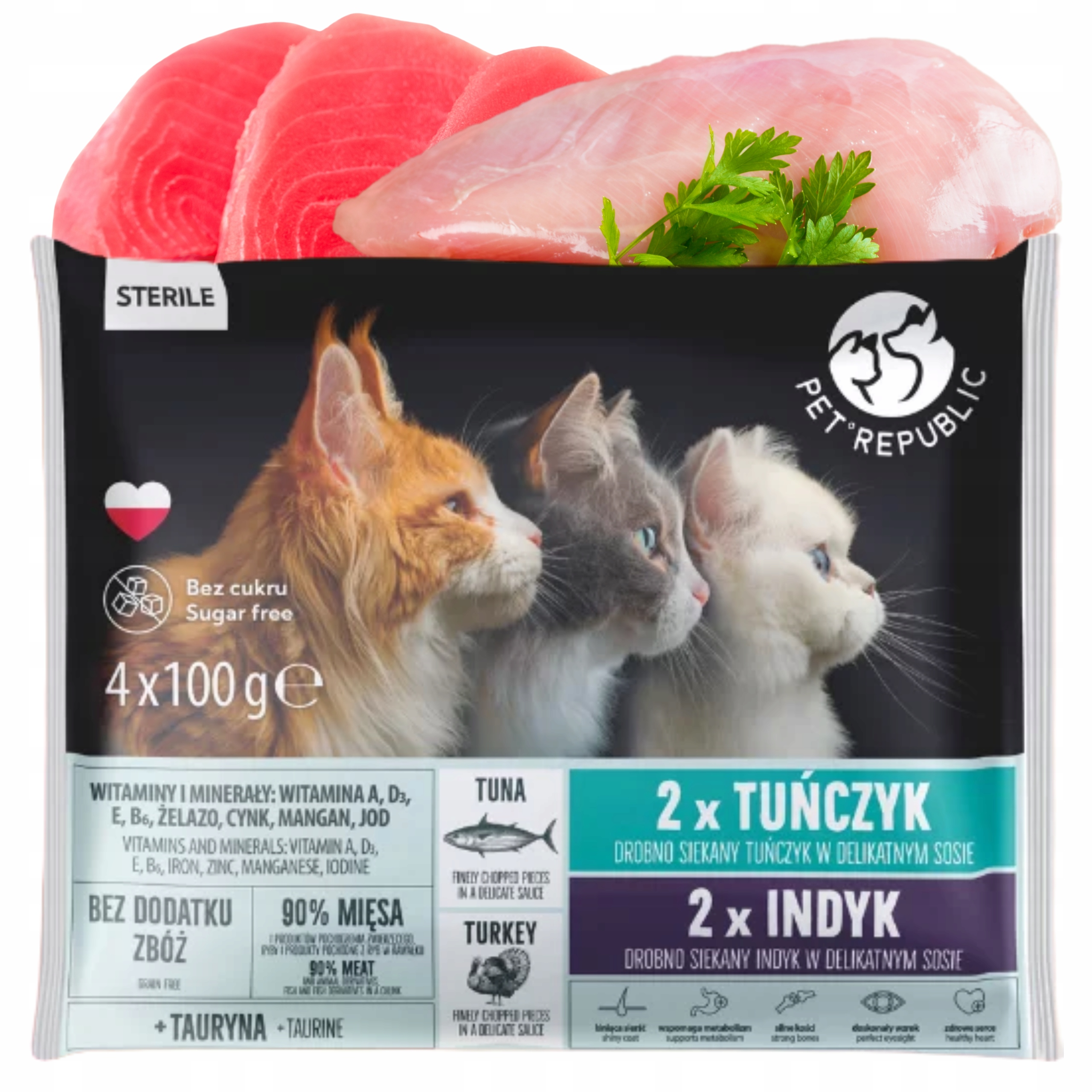 PET REPUBLIC mokra karma dla kota tuńczyk indyk 4 x 100g