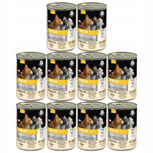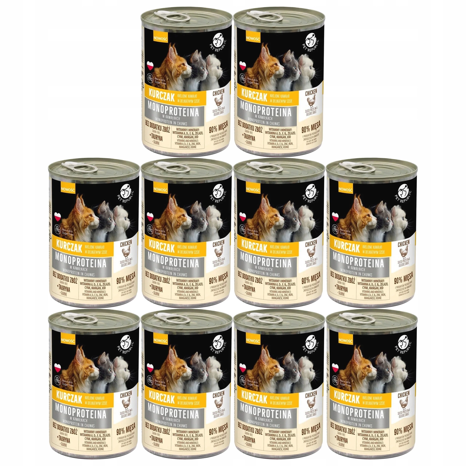 PET REPUBLIC Mono Protein Kurczak karma mokra dla kota 400 g to pełnoporcjowa karma mokra stworzona z myślą o dorosłych kotach. Dzięki zastosowaniu tylko jednego źródła białka – kurczaka – jest idealna dla zwierząt z alergiami pokarmowymi lub wrażliwym układem trawiennym.