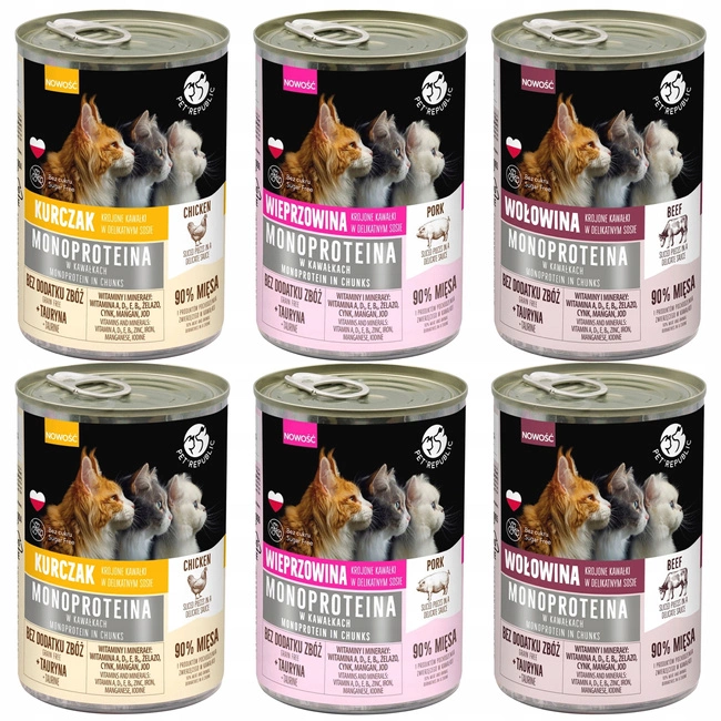 PET REPUBLIC Mono Protein Mix Smaków karma dla kota mokra 6 x 400g