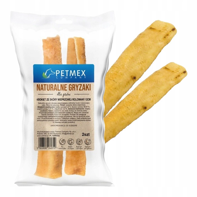 - Przysmak PETMEX dla psa naturalny gryzak przekąska krokiet ze skóry wieprzowej 2 sztuki