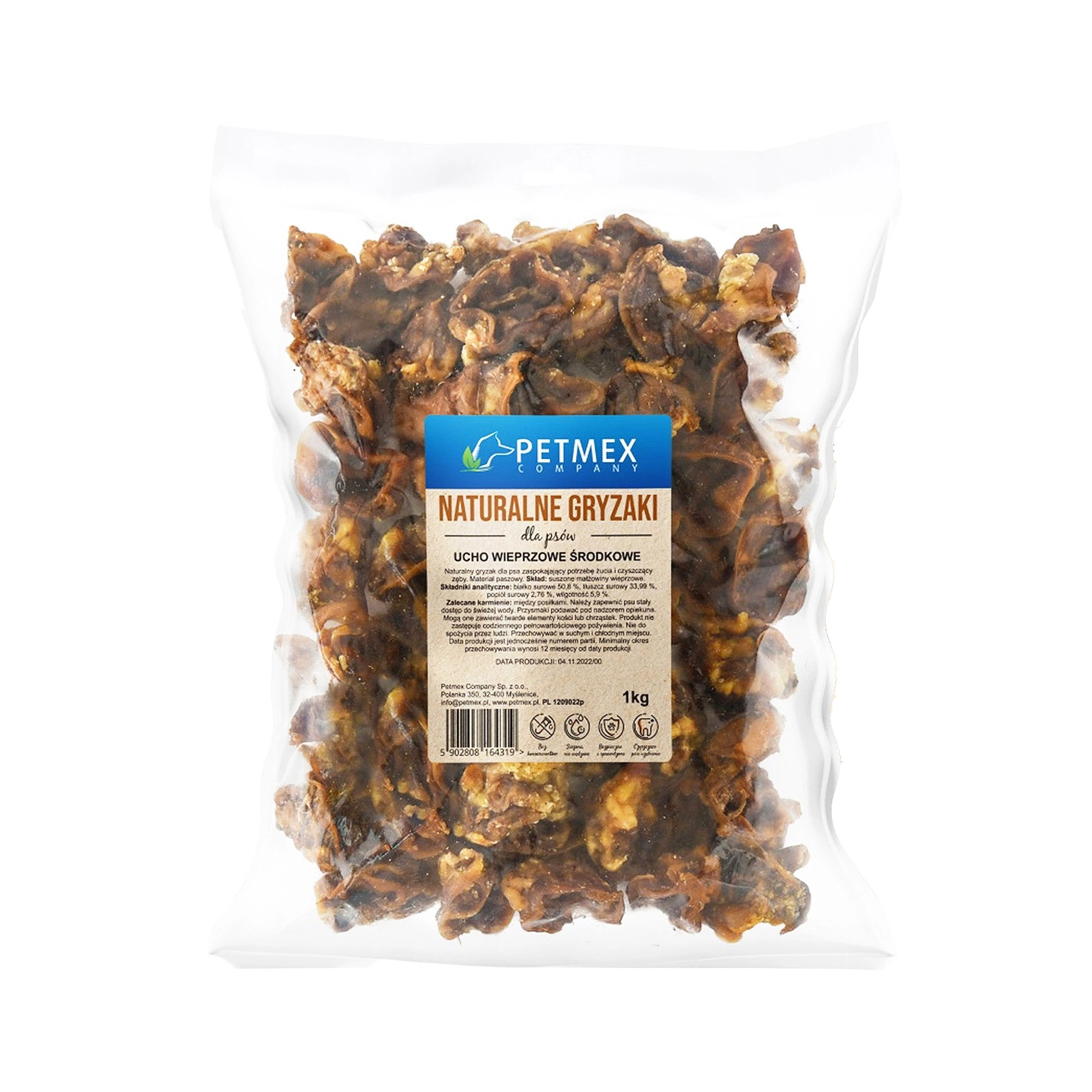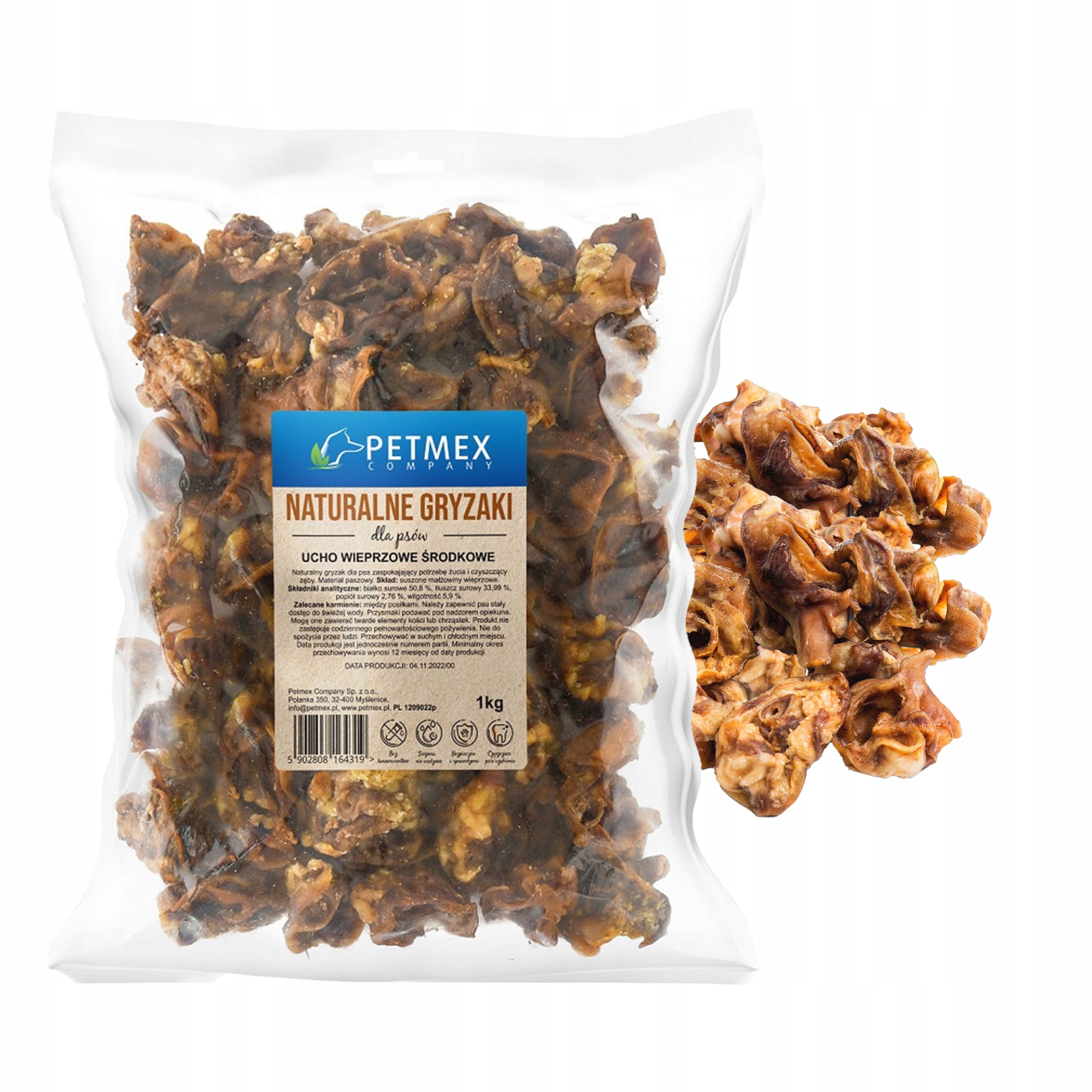 PETMEX Ucho Wieprzowe środkowe Naturalny Gryzak dla psa 1kg