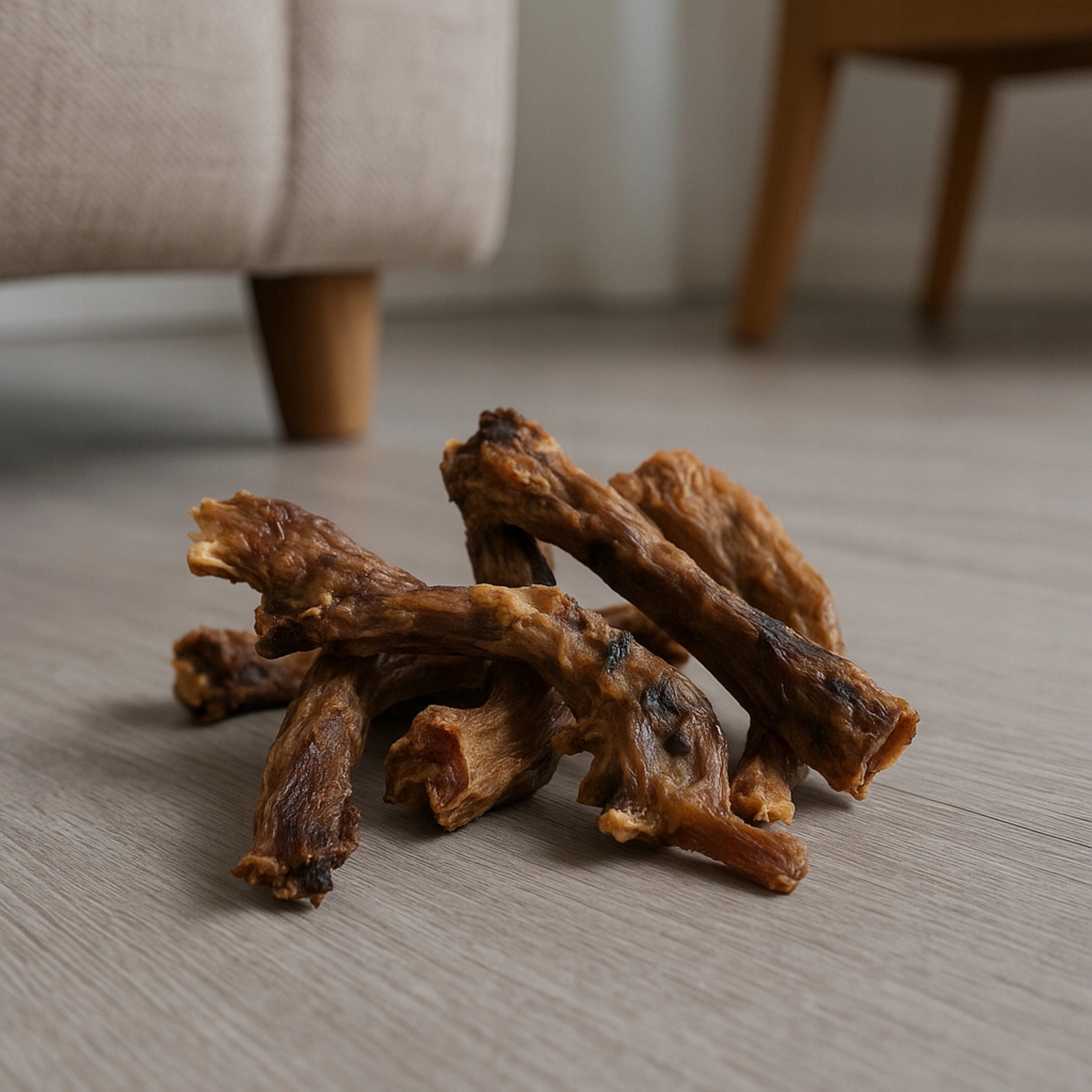 • Nie dla bardzo małych szczeniąt – szyjki mogą być zbyt twarde dla zębów mlecznych.