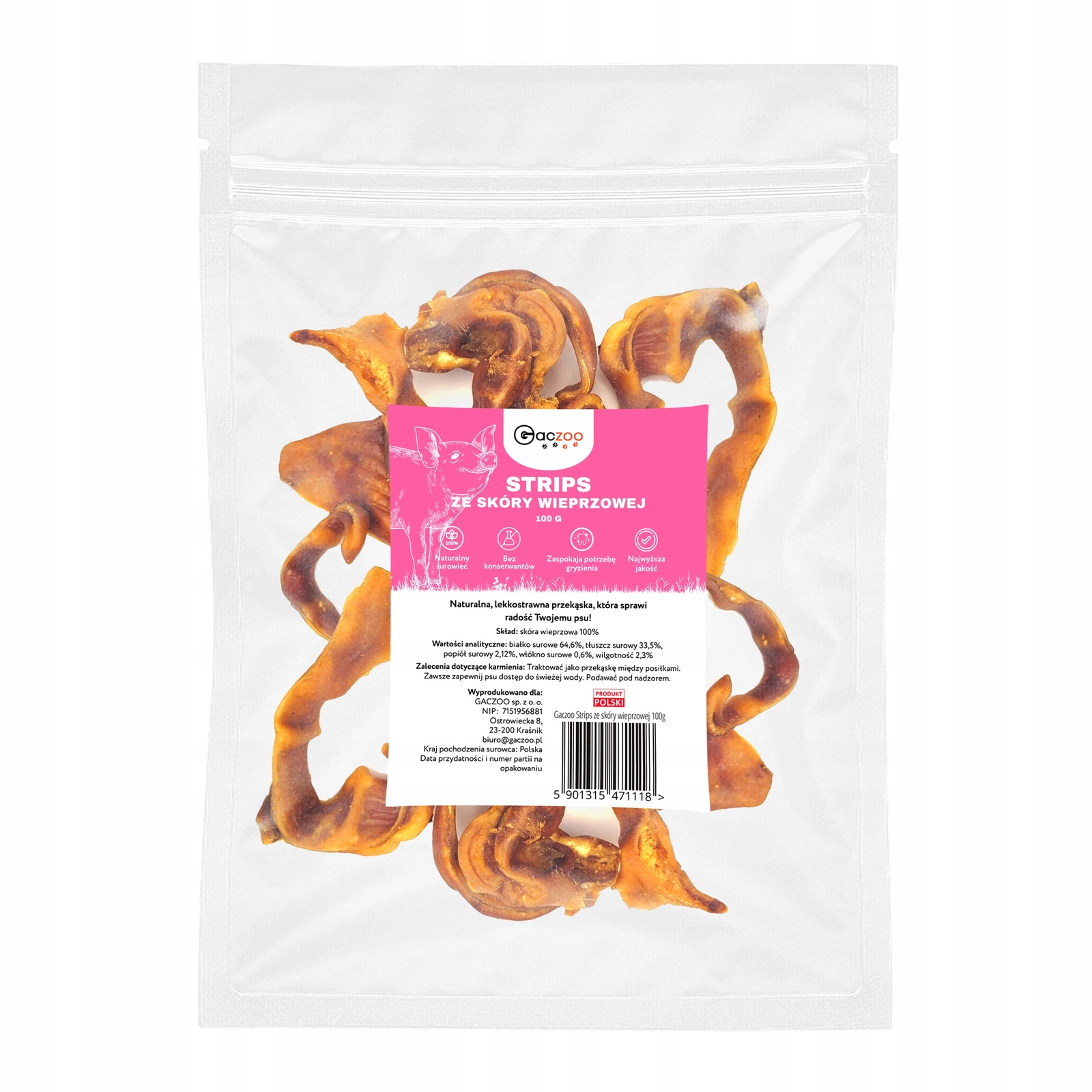 ✅ GACZOO Przysmak dla psa Strips ze skóry wieprzowej – Zdrowy i Naturalny Gryzak