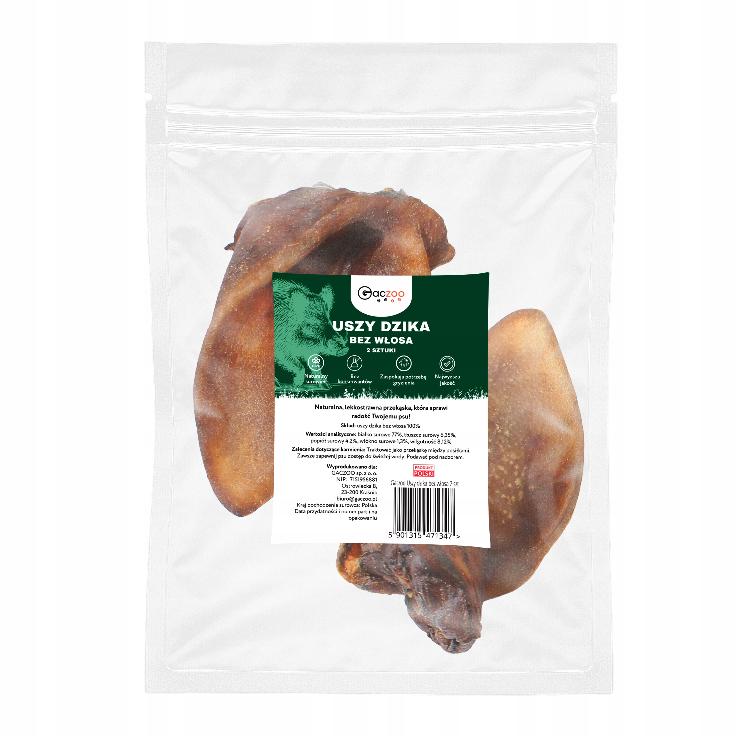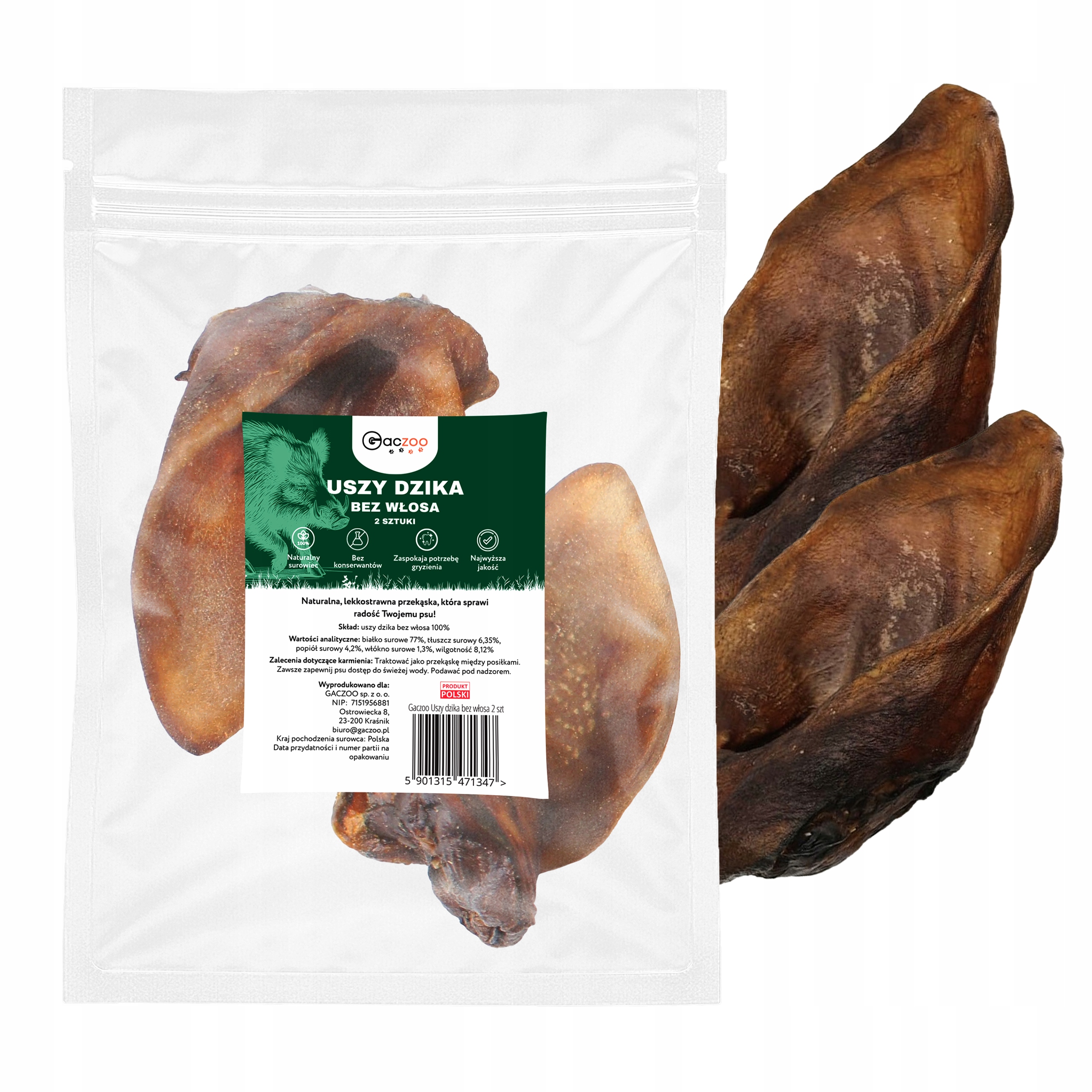 ✅ GACZOO Przysmak dla psa Uszy dzika – Zdrowy i Naturalny Gryzak