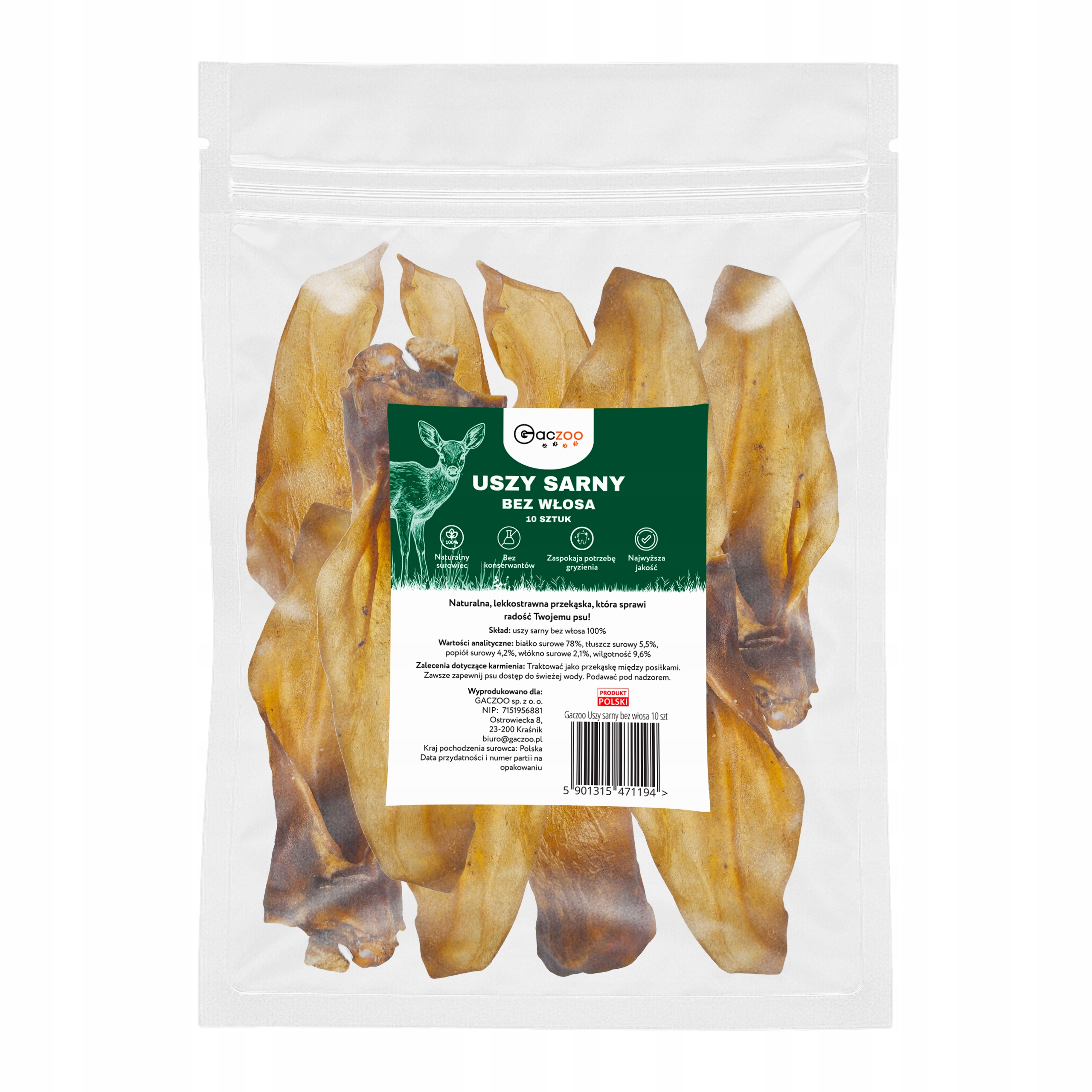 ✅ GACZOO Przysmak dla psa Uszy sarny – Zdrowy i Naturalny Gryzak