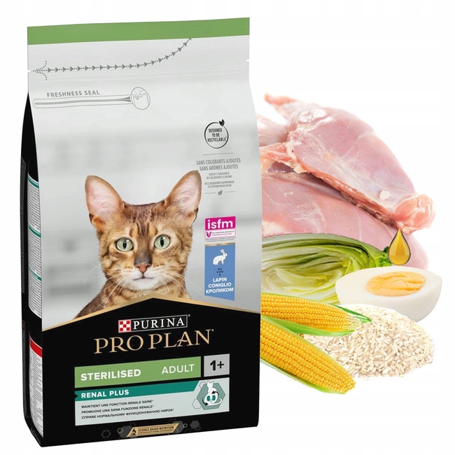 PURINA PRO PLAN Sterilised z królikiem to pełnoporcjowa, sucha karma dla dorosłych kotów po sterylizacji. Została opracowana z myślą o wspieraniu zdrowia układu moczowego, utrzymaniu prawidłowej masy ciała i dostarczaniu wszystkich niezbędnych składników odżywczych dla zdrowia i witalności kota.