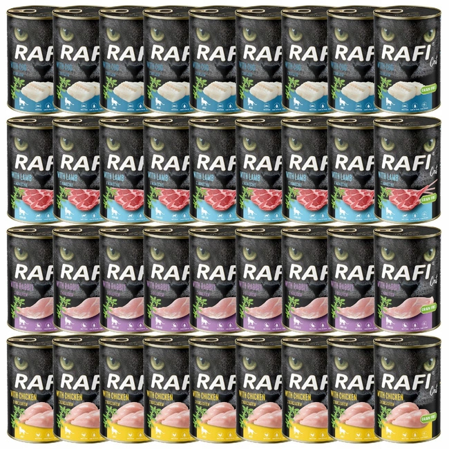 RAFI CAT Dolina Noteci Mix Smaków to pełnoporcjowa, bezzbożowa karma mokra dla kotów, składająca się z różnych wariantów smakowych, które urozmaicają dietę i dostarczają wszystkich niezbędnych składników odżywczych. Dzięki wysokiej zawartości mięsa i podrobów karma wspiera zdrowie kota, poprawia jego odporność i dba o kondycję skóry oraz sierści. Idealna dla kotów wybrednych oraz tych, które potrzebują naturalnej i dobrze zbilansowanej diety.