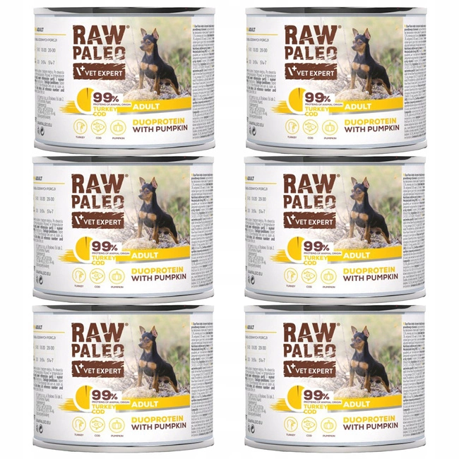 RAW PALEO Duoprotein Indyk Dorsz karma dla psa mokra 6 x 200g bezzbożowa