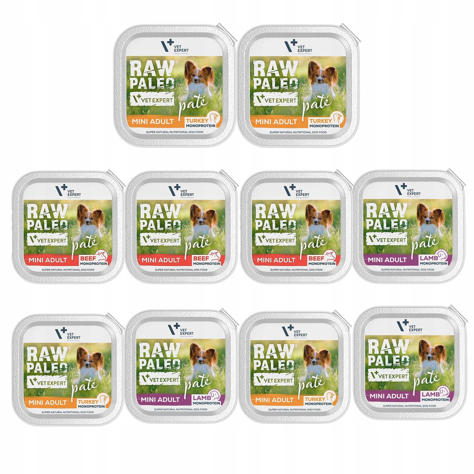 Raw Paleo Mini PATE Karma mokra dla psa mix smaków 10 x 150g Bezzbożowa
