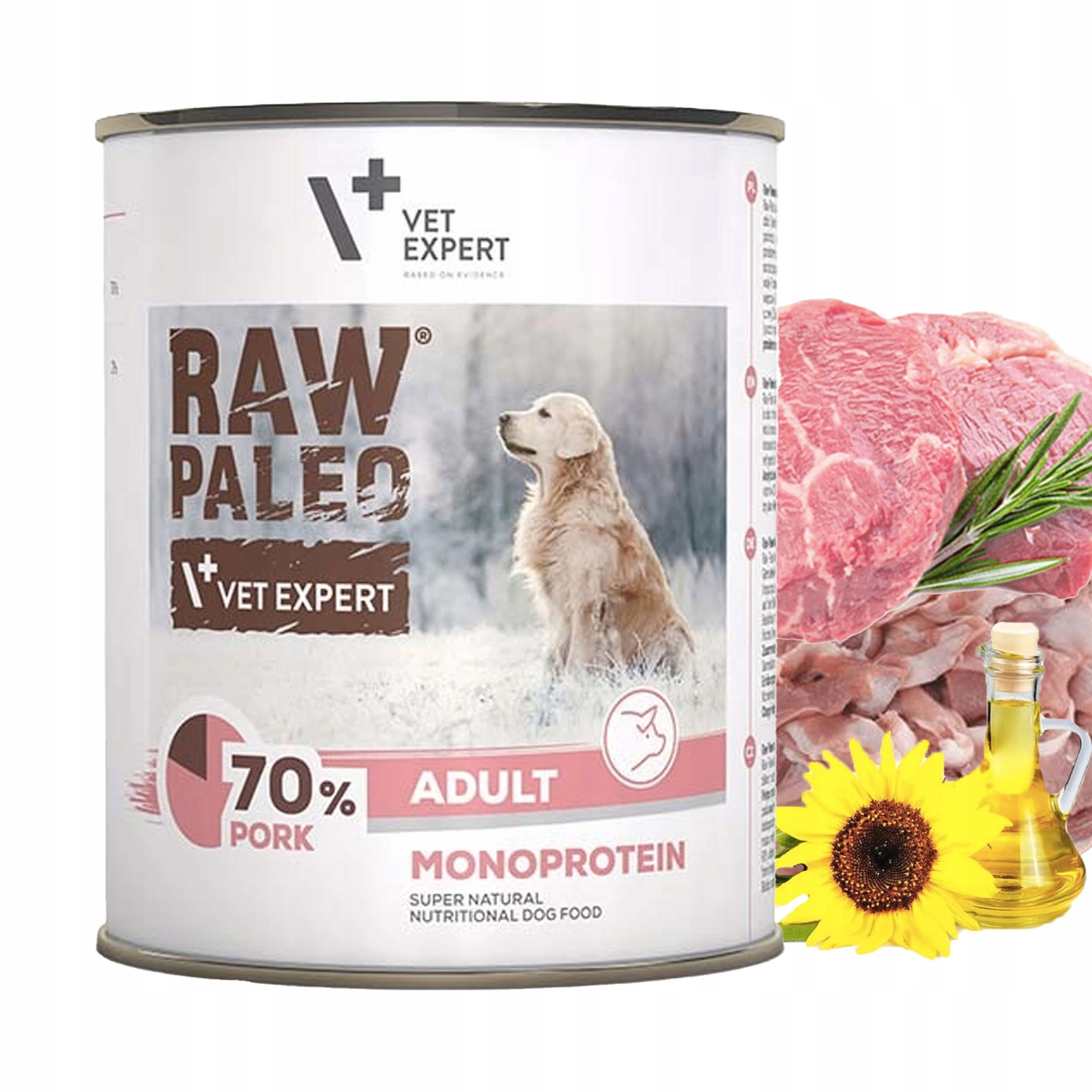 RAW PALEO Mono to pełnoporcjowa, monobiałkowa mokra karma przeznaczona dla dorosłych psów powyżej 1. roku życia. Bezzbożowa formuła dostępna w różnych wariantach smakowych, takich jak dorsz, kaczka czy wieprzowina, pozwala na urozmaicenie diety psa, dostarczając mu niezbędnych składników odżywczych.