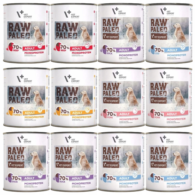 Raw Paleo Mono Karma mokra dla psa mix smaków 12 x 800g Bezzbożowa