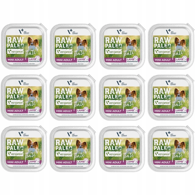 RAW PALEO PATE Mini Adult Jagnięcina to pełnoporcjowa, monobiałkowa mokra karma w formie delikatnego pasztetu, przeznaczona dla dorosłych psów ras małych (do 8 kg masy ciała). Bezzbożowa formuła oparta na jagnięcinie dostarcza niezbędnych składników odżywczych, wspierając zdrowie i kondycję psa.