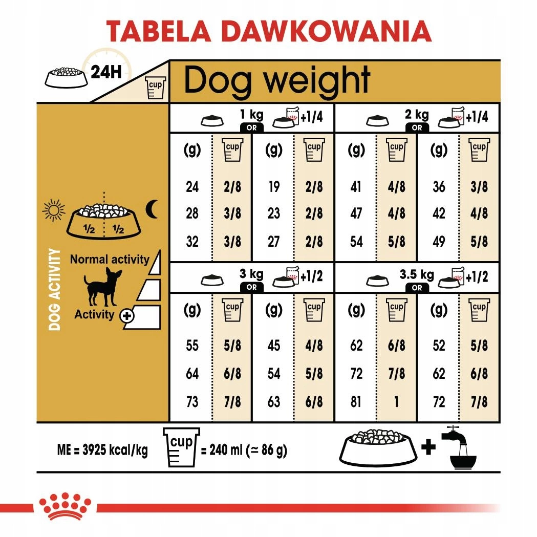 W przypadku żywienia karmą mokrą i suchą należy zapoznać się z tabelą dawkowania, aby dobrać odpowiednią porcję poszczególnych karm.