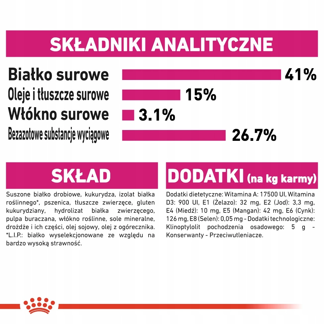 Dla części kotów głównym kryterium wyboru karmy jest poziom białka. Karma ROYAL CANIN® Protein Exigent charakteryzuje się odpowiednim zbilansowaniem białka, węglowodanów i tłuszczu oraz najwyższą smakowitością.