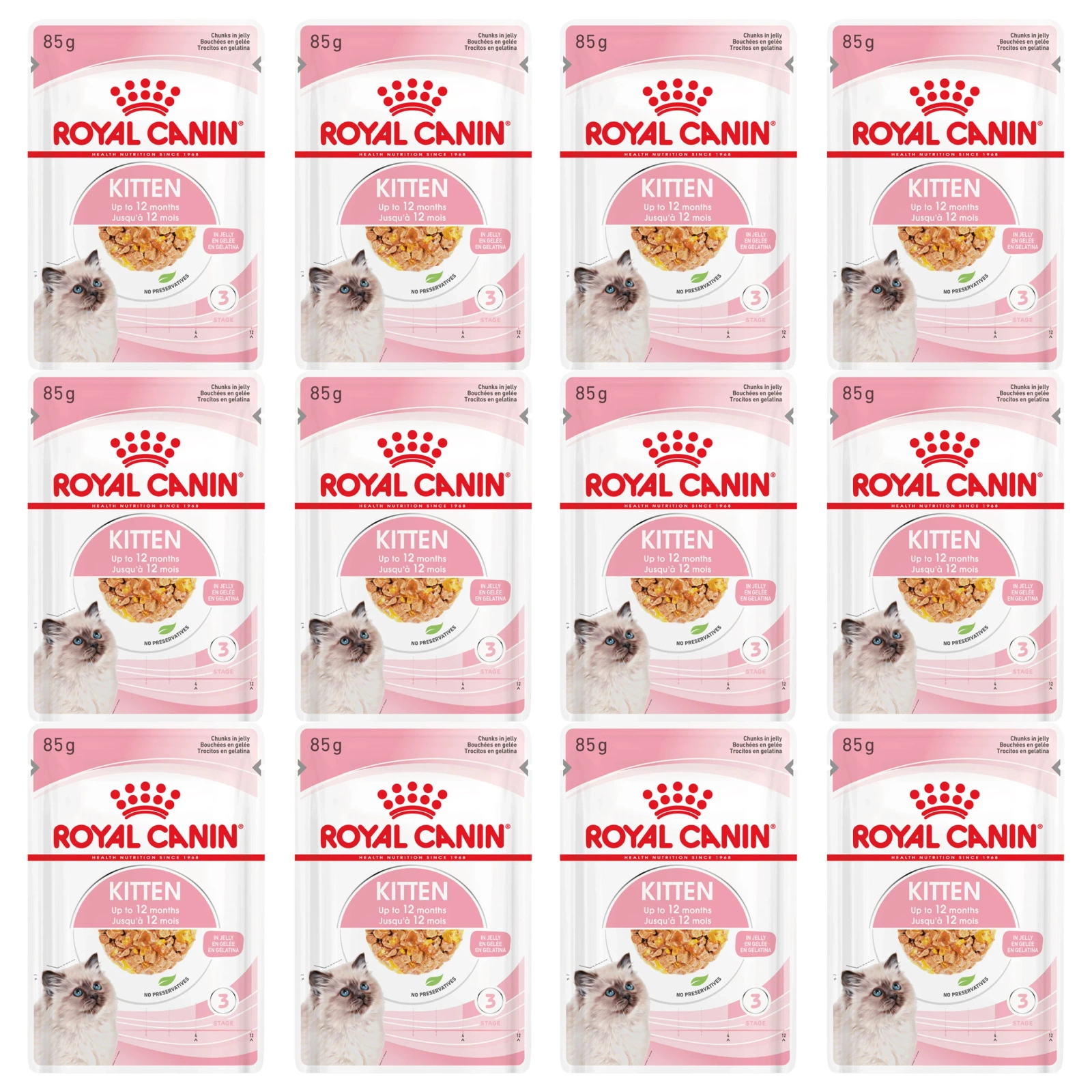 Karma mokra ROYAL CANIN® Kitten w galaretce została opracowana specjalnie w celu pokrycia potrzeb pokarmowych kociąt w drugim etapie wzrostu. Receptura jest odpowiednia dla kociąt w wieku 4-12 miesięcy, w okresie znacznych zmian fizycznych i behawioralnych.