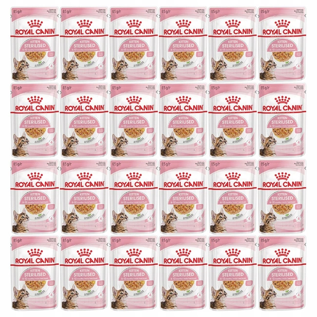 Karma mokra ROYAL CANIN® Sterilised Kitten w sosie została opracowana specjalnie w celu pokrycia potrzeb pokarmowych wysterylizowanych kociąt w drugim etapie wzrostu. Receptura jest odpowiednia dla kociąt w wieku 6-12 miesięcy, po sterylizacji, które przechodzą okres znacznych zmian fizycznych i behawioralnych.
