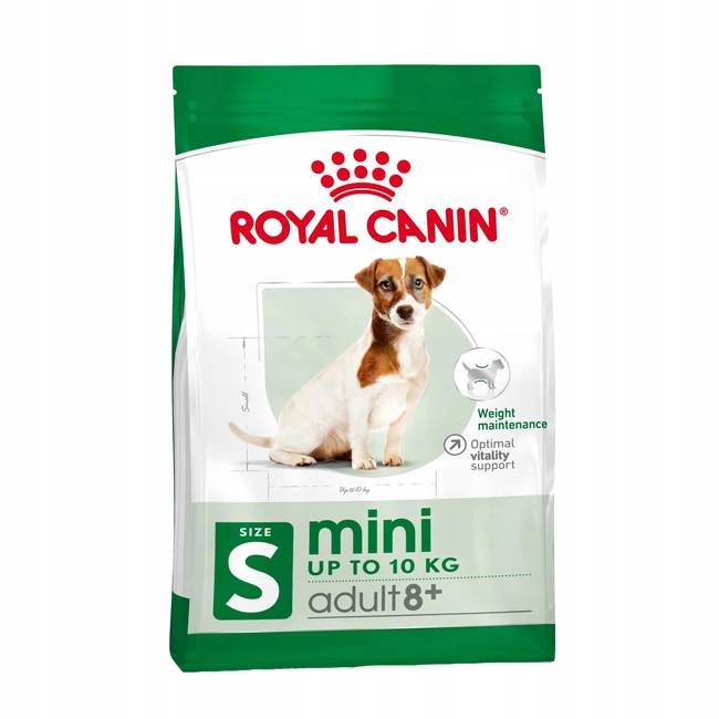 Dla psów ras małych powyżej 8 roku życia zaleca się karmę ROYAL CANIN® Mini Adult 8+. To pełnoporcjowa karma, o recepturze prawidłowo zbilansowanej pod względem składników pokarmowych i opracowanej specjalnie z uwzględnieniem szczególnych potrzeb psów dojrzałych. Karma przeznaczona dla dorosłych psów o masie ciała do 10 kg.