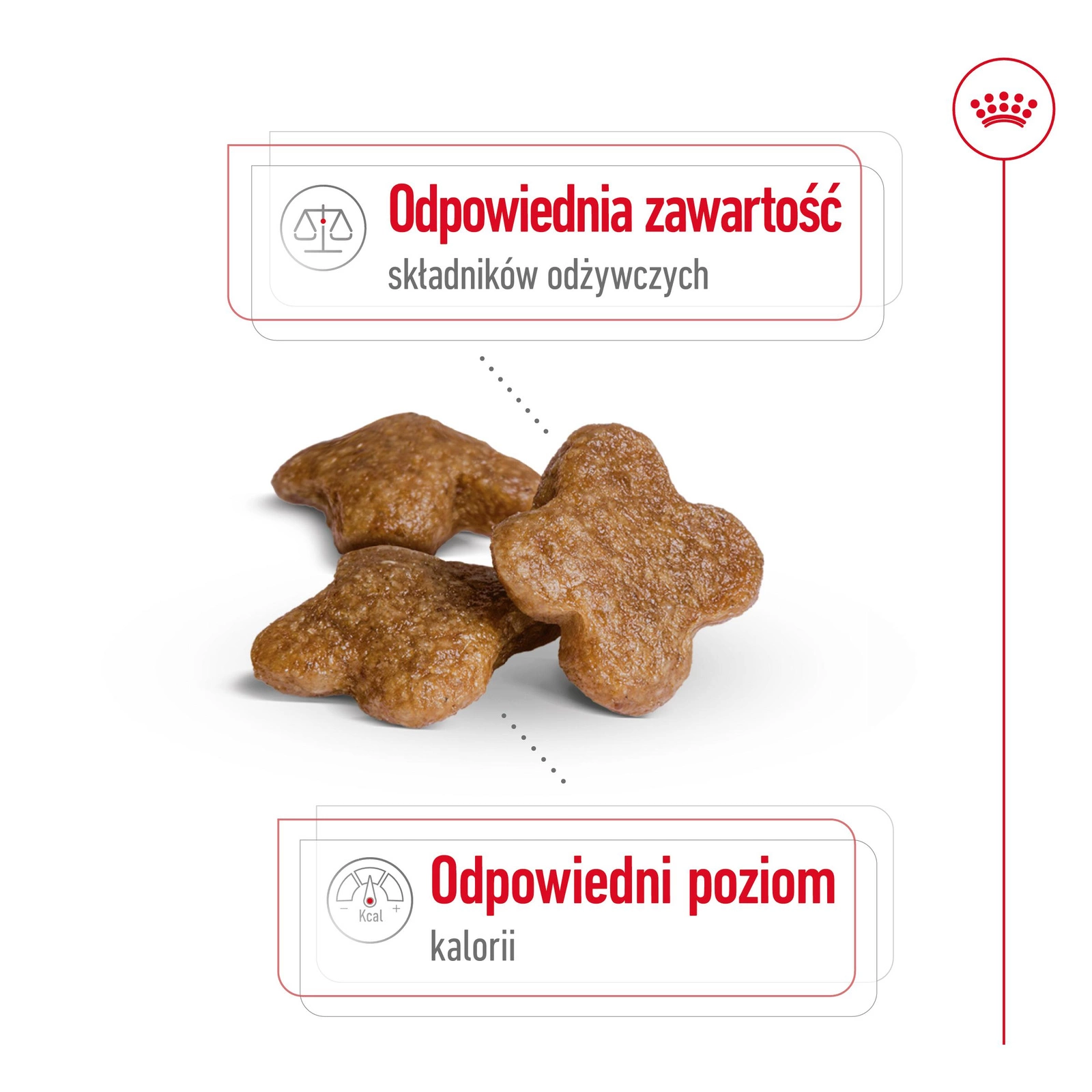 Psy ras małych są pełne energii, dlatego potrzebują karmy odpowiedniej do ich żywiołowego usposobienia i aktywnego trybu życia, które jednocześnie wspomaga zdrowie kości. Optymalna wartość kaloryczna karmy pokrywa wysokie potrzeby energetyczne psa, a jednocześnie sprzyja utrzymaniu prawidłowej masy ciała. Receptura zawiera również kombinację składników pokarmowych, które sprzyjają utrzymaniu mocnych i zdrowych kości.