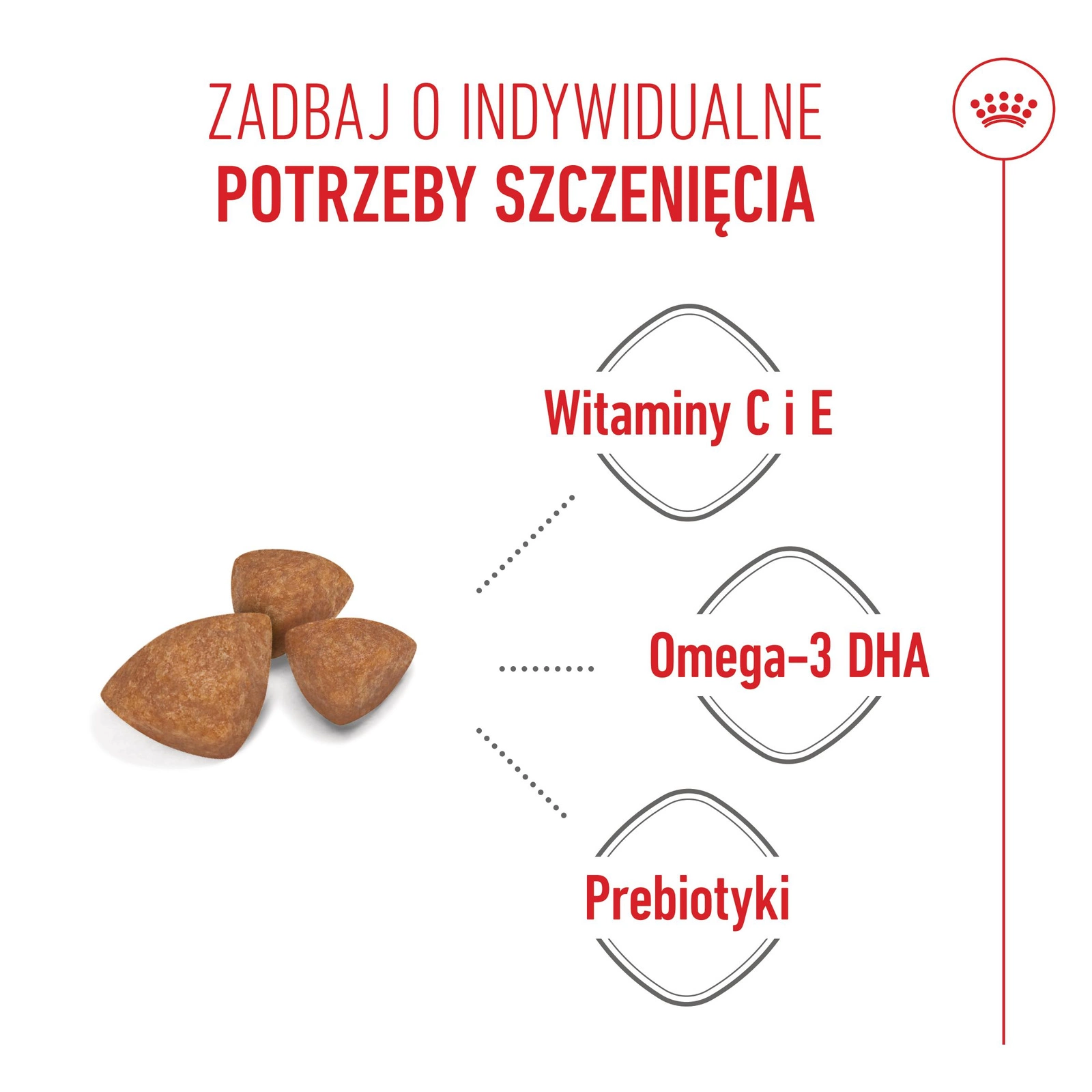 - SILNY UKŁAD ODPORNOŚCIOWY. Wspomaga rozwój zdrowego układu odpornościowego szczenięcia dzięki zawartości przeciwutleniaczy, w tym witamin E i C.