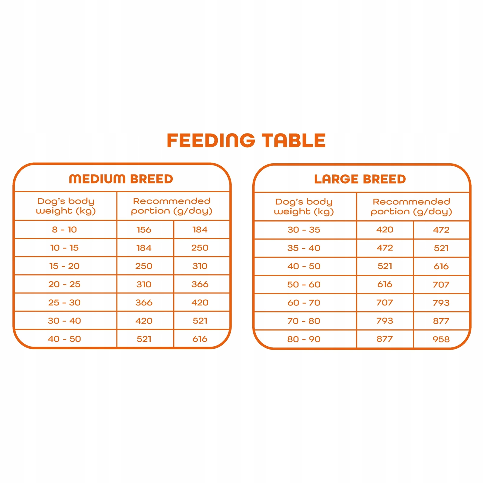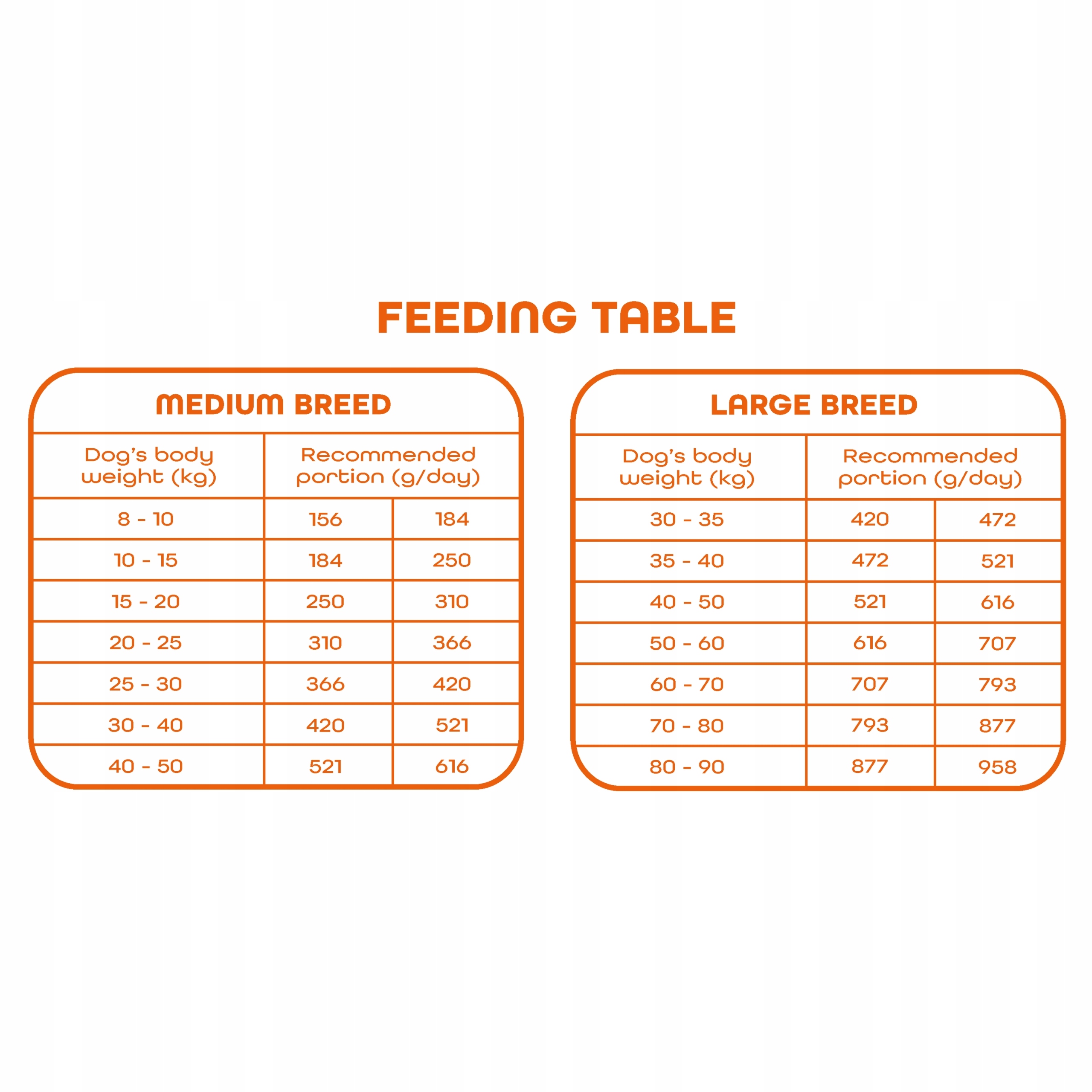 • Dawkowanie: ilość karmy należy dostosować do masy ciała, wieku, poziomu aktywności oraz indywidualnych potrzeb psa. Warto kierować się tabelą żywienia podaną na opakowaniu produktu.
