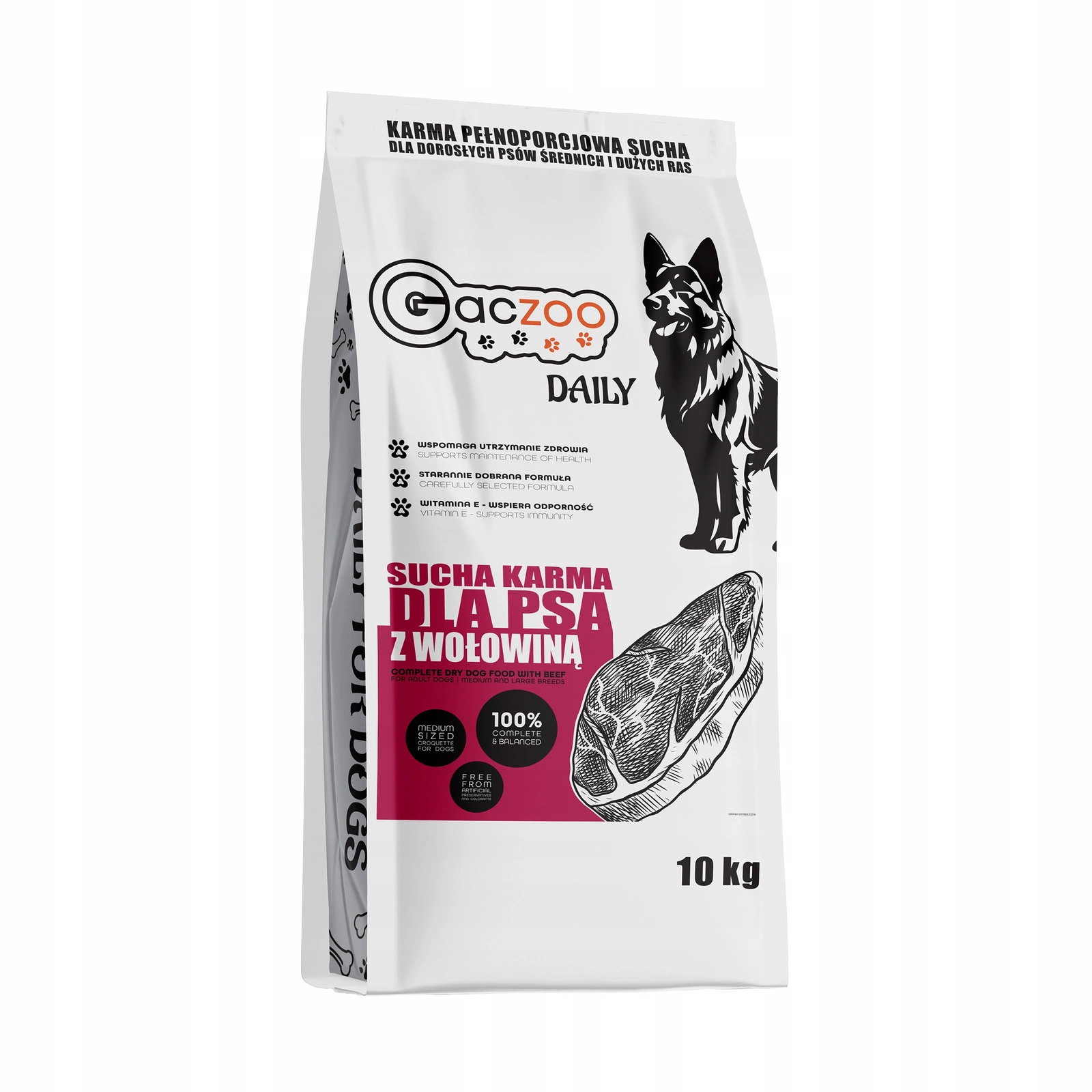 Sucha karma dla psa Gaczoo Daily Wołowina 10 kg Adult Dog z Witaminami