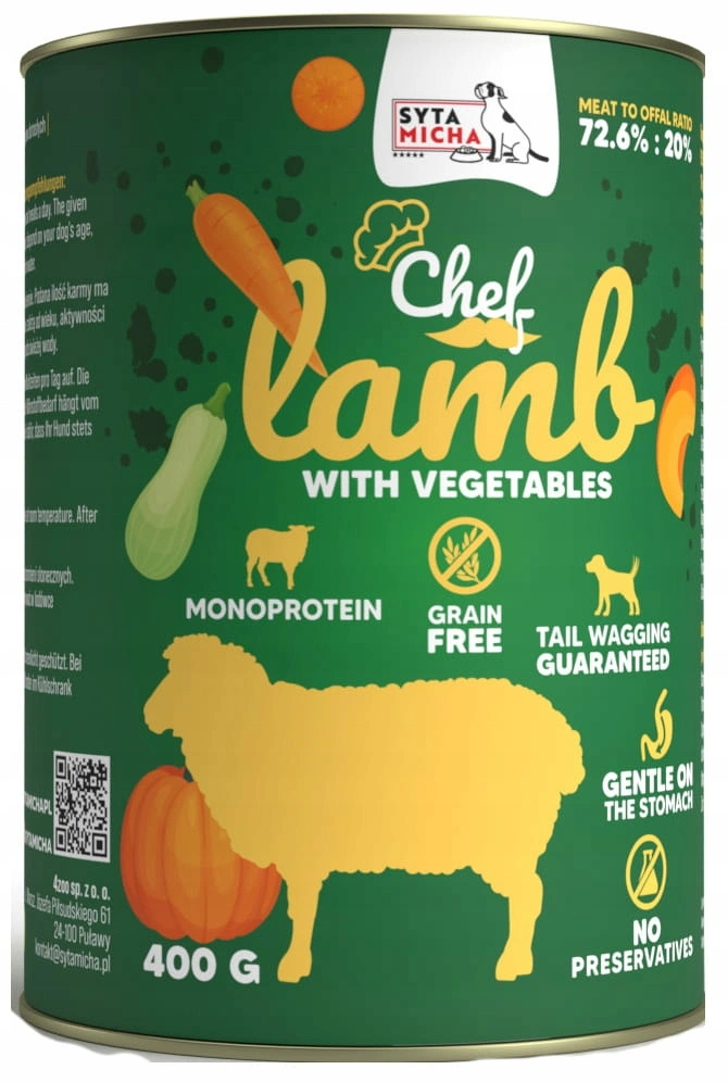 Syta Micha Chef karma mokra dla psa jagnięcina z warzywami 12 x 400g