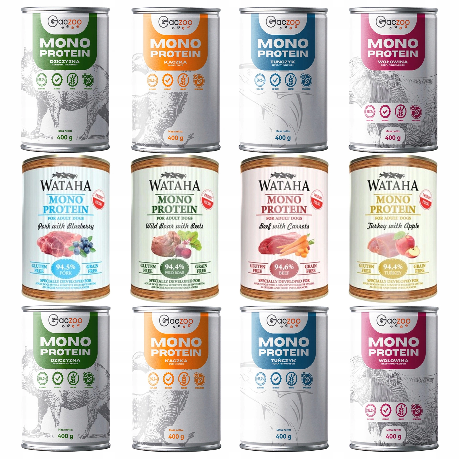 WATAHA GACZOO Mono Protein Adult karma mokra dla psa Mix smaków 12 x 400g