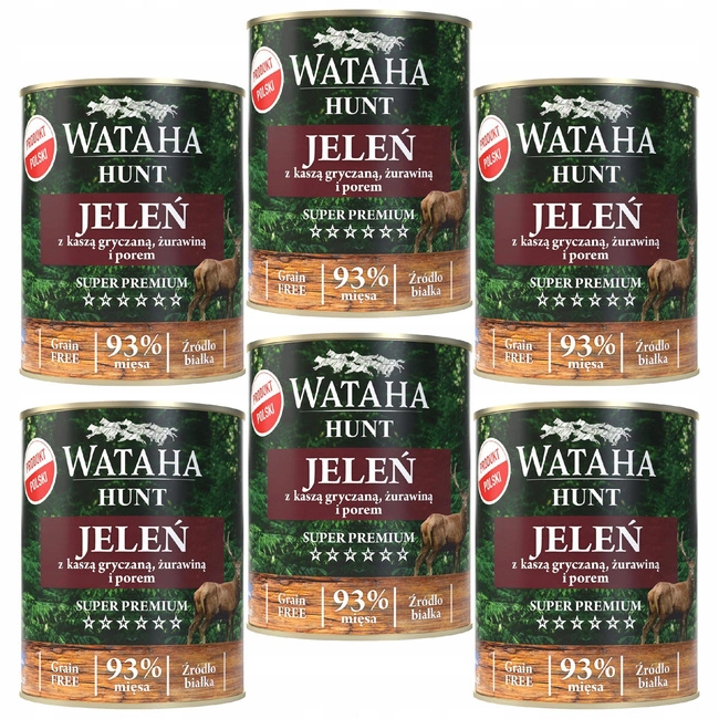 WATAHA HUNT Adult karma mokra psa Jeleń z Kaszą Żurawiną i Porem 6 x 800g