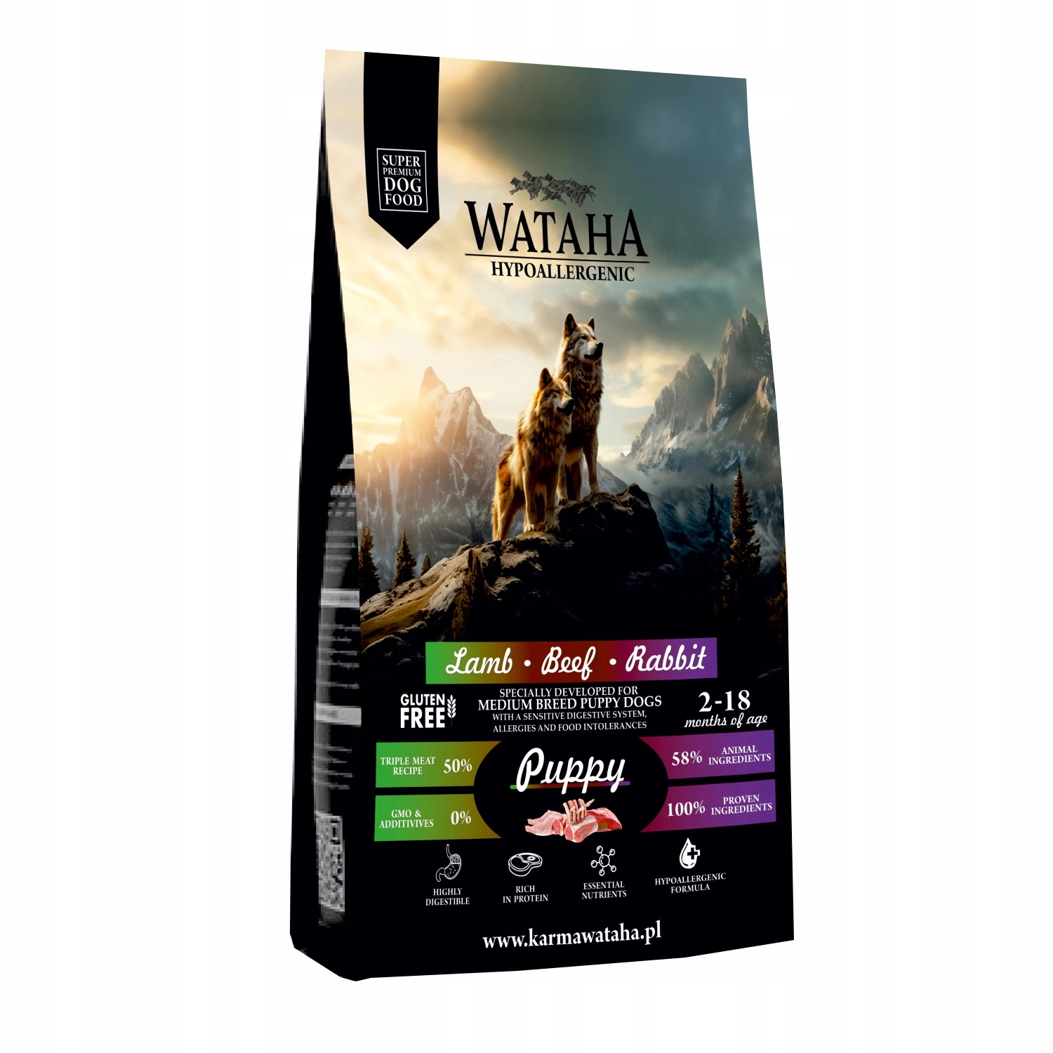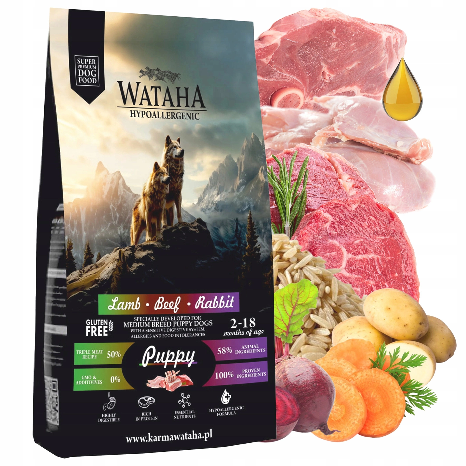 WATAHA Średnie i Duże rasy karma sucha dla szczeniąt Jagnięcina Królik Wołowina Ryż 6 kg