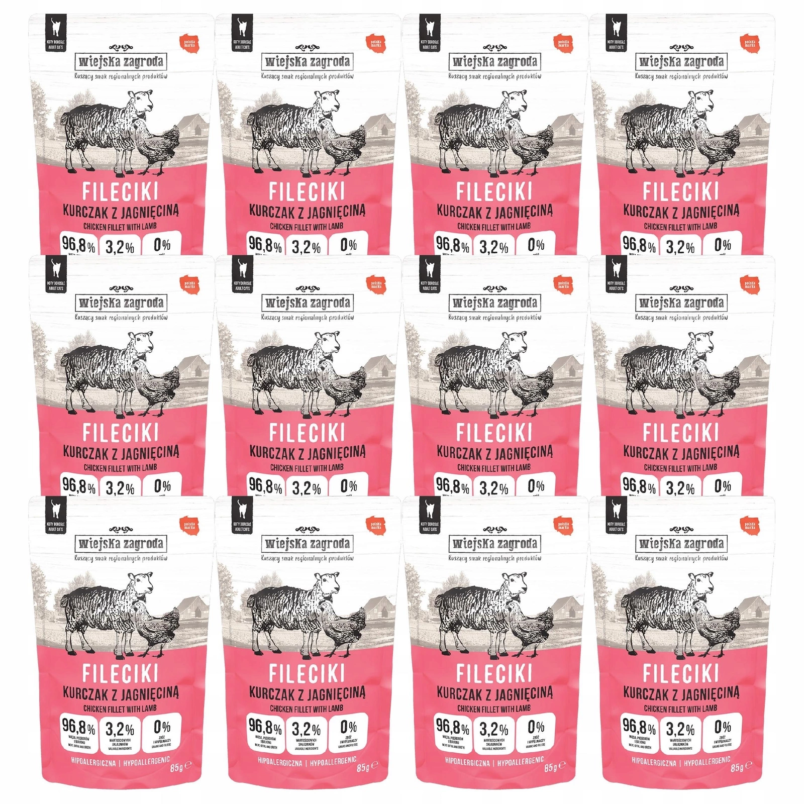 Wiejska Zagroda Fileciki karma mokra dla kota Kurczak z Jagnięciną 12 x 85g