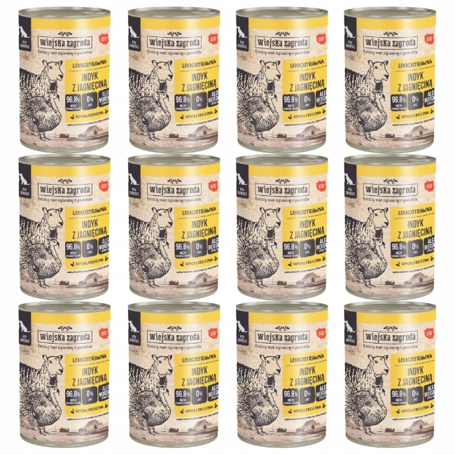 WIEJSKA ZAGRODA Mokra karma dla psa Indyk Jagnięcina 12 x 400g