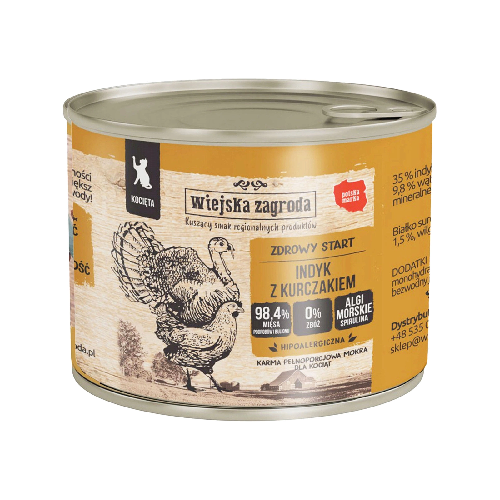 - Karma mokra Wiejska Zagroda dla kociąt bez zbóż puszka indyk kurczak