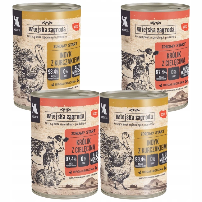 WIEJSKA ZAGRODA Karma mokra dla Kociąt Mix smaków 4 x 400g bezzbozowa