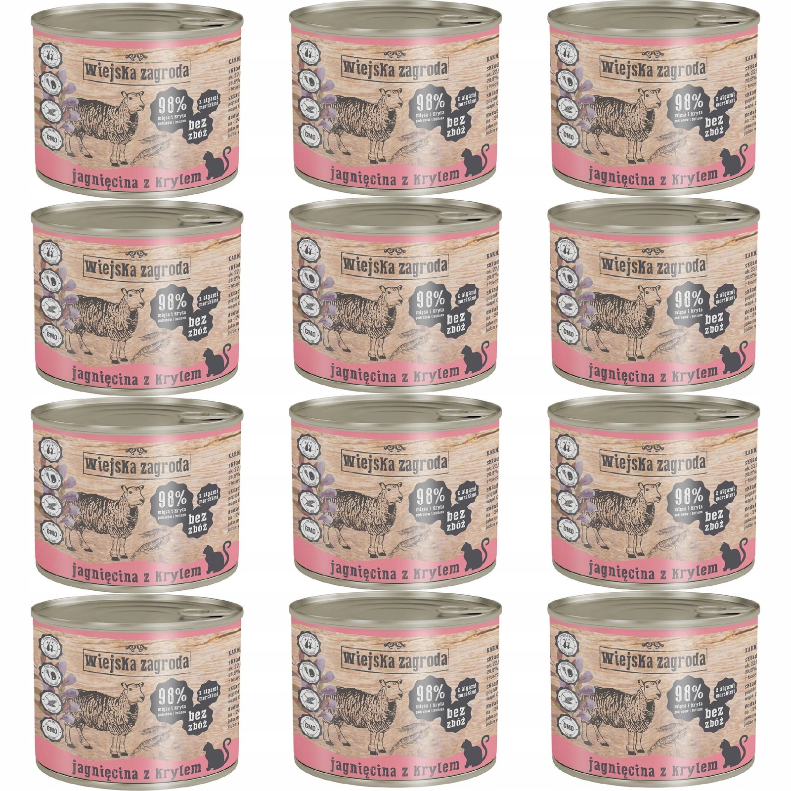 WIEJSKA ZAGRODA Karma mokra dla kota Jagnięcina Kryl 12 x 200g