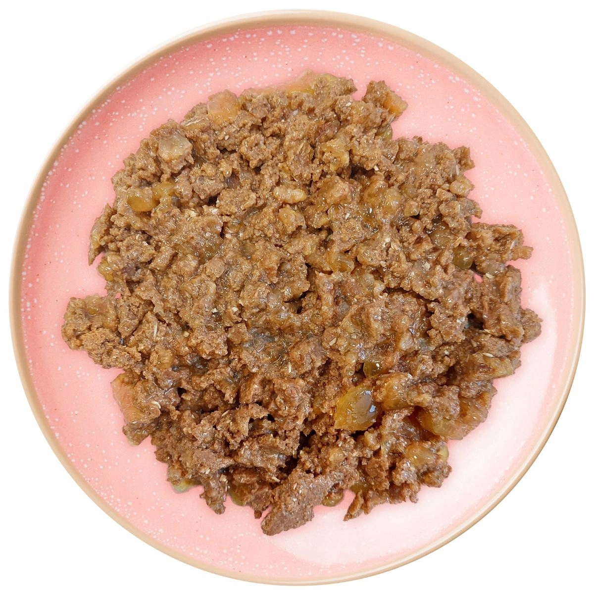 Wysoka zawartość mięsa – aż 98,4% mięsa, podrobów oraz bulionu, co dostarcza pełnowartościowego białka niezbędnego dla zdrowia kota.